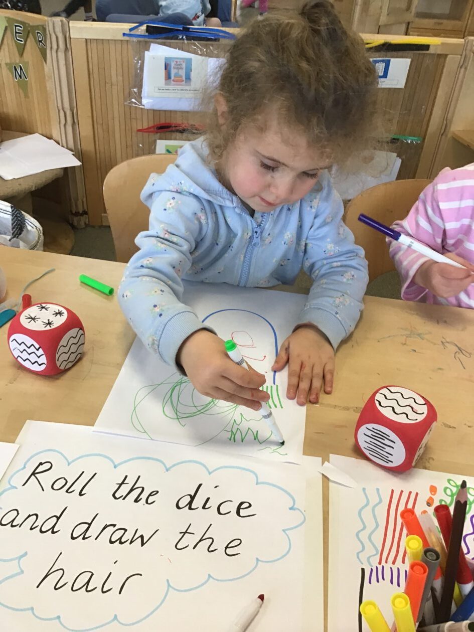 We loved rolling the dice and copying the line patterns to make some crazy hair!