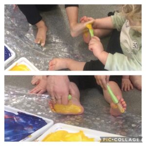 Recently in the pond the children had a great time bringing laughter, creativity and a little bit of delightful chaos when painting with their feet.
