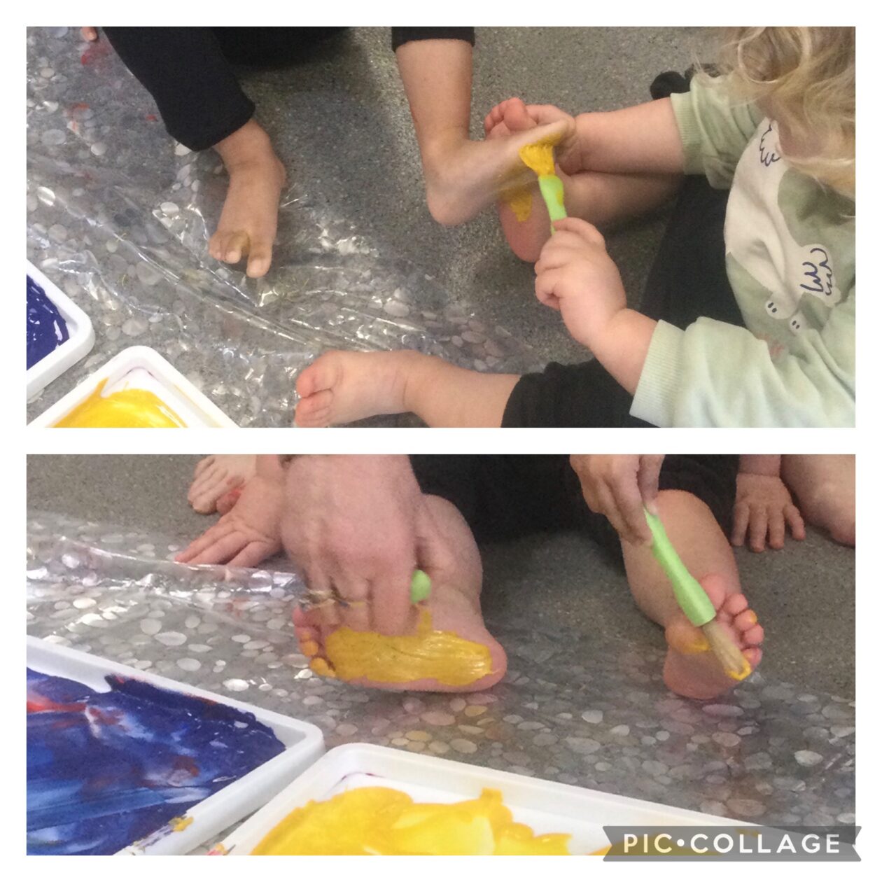 It didn’t take long before the children asked for paint brushes and the squeals of laughter filled the room as they felt the tickle of the bristles on their feet.