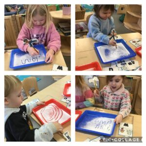 All things wild and wonderful has been a continuing theme in our garden this week! We love small world play and are always keen to introduce our favourite animals, figures and vehicles! Small world play is a fantastic way to develop our imagination, creativity and problem solving skills. We loved one of our friend t-shirts and this sparked the idea to explore wild animals! Delving into our resources we discovered elephants, tigers, gorillas, rhinos, tigers and lions “the king of the jungle!”