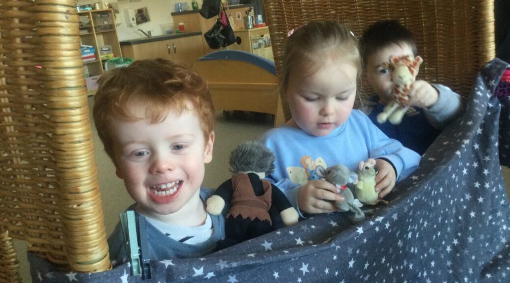 One of our favourite books is Rumble in the Jungle and we had so much fun retelling the story using our animals, adding a “roar for the lion”, “oooh-oooh, aah-aah like the monkey”, and our favourite actions for the elephant, chimpanzee and sssssssssnake!