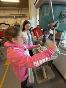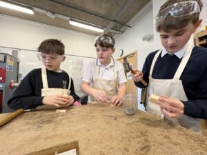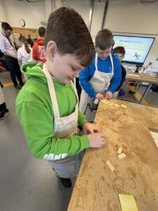 P7 are visiting the high school as part of our transition. Today is technology and we are drilling, hammering nails and using vices.