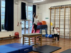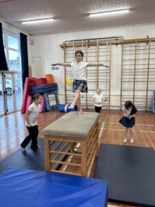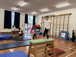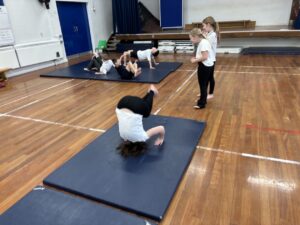 Primary 5 have started Gymnastics in PE. They have been learning how to create a sequence using a balance, movement and control.