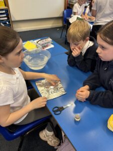 Primary 5 have been investigating the principles of floating and sinking in water. They made predictions before carrying out experiments to test their ideas. In the final part of the lesson, they were challenged to design and build a tin foil boat capable of holding weight.