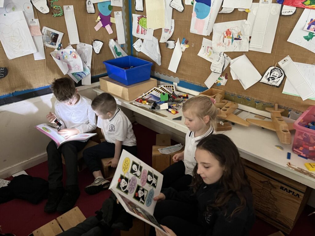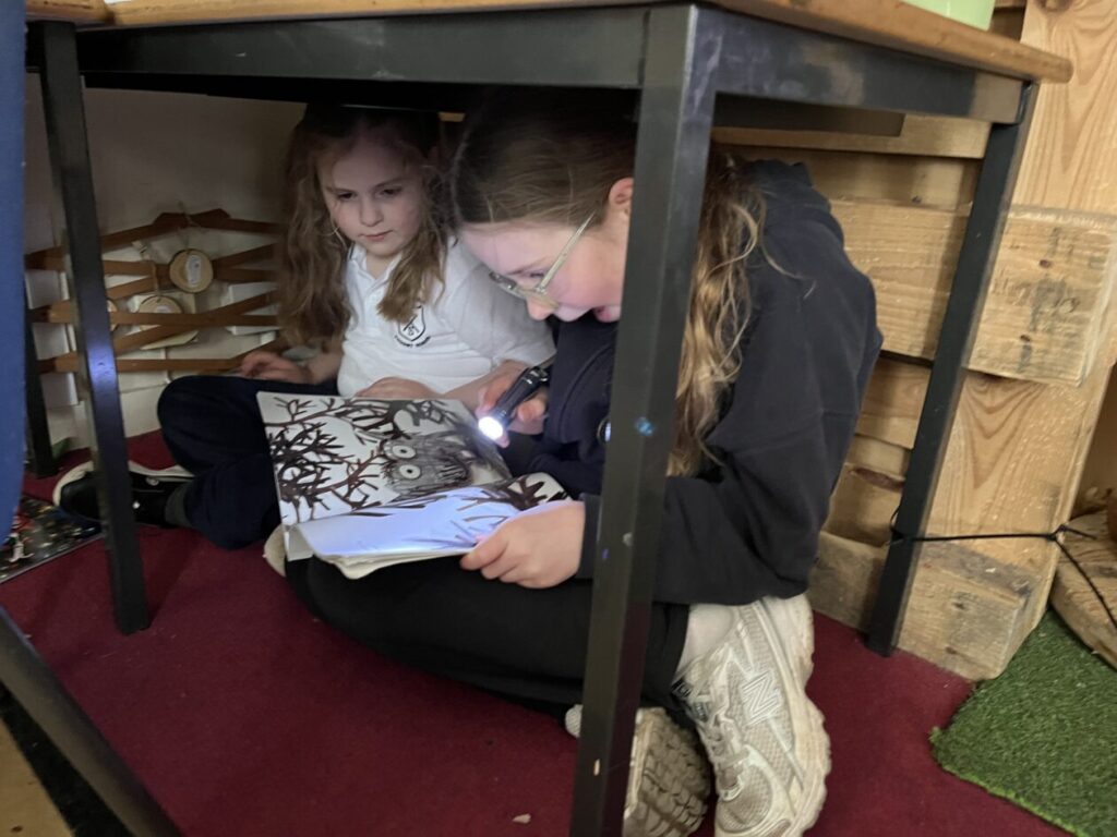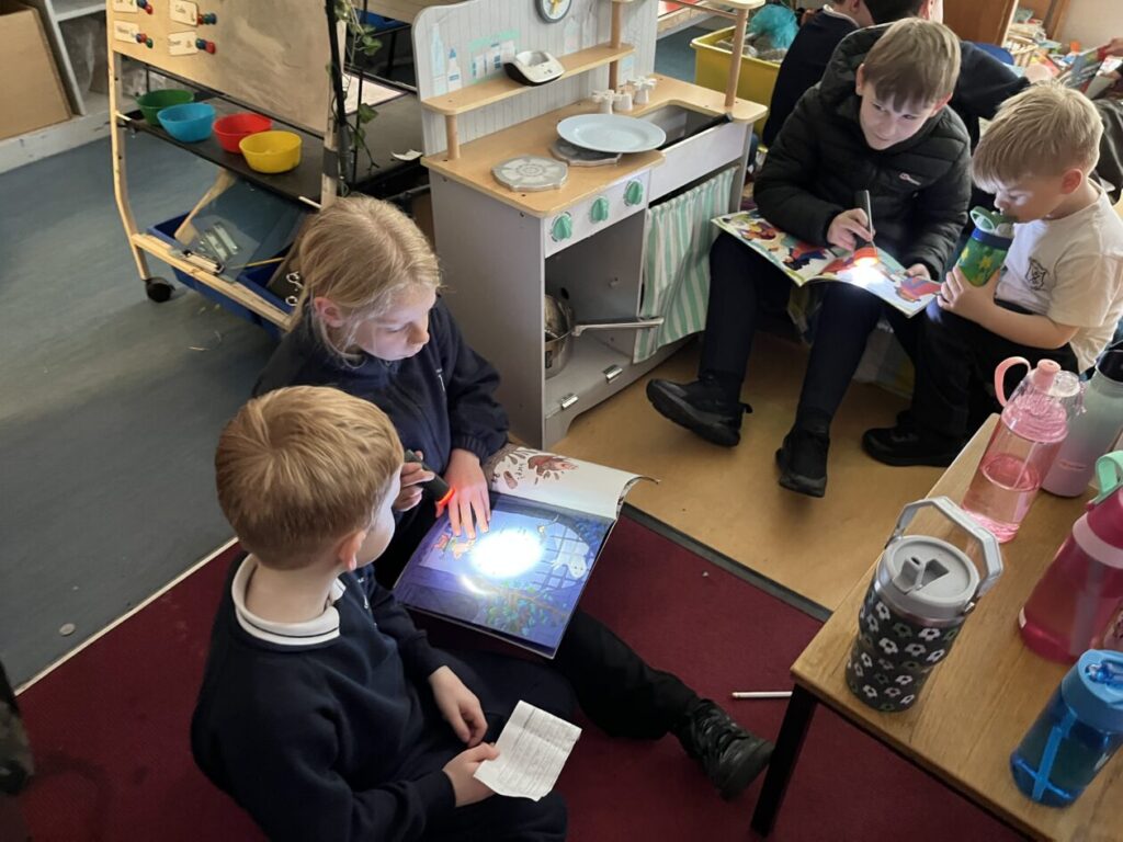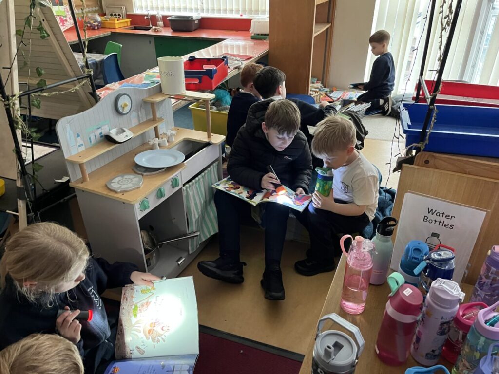 Primary 5 took part in some fun activities to celebrate World Book Day. We started the day with an emoji quiz to guess the book title. Later we did some book themed Maths problems and worked in teams to be first finished. In the afternoon we joined our buddies for some active games outside with a book twist. We also took part in a scavenger hunt with P1 in the playground. Next we finished the afternoon by reading stories to our buddies by torchlight. 🔦