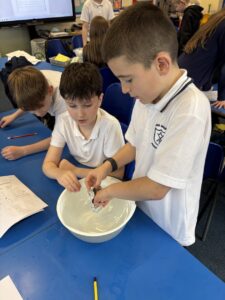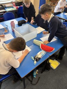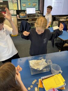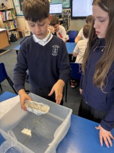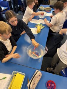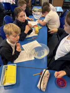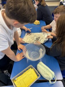 Primary 5 have been investigating the principles of floating and sinking in water. They made predictions before carrying out experiments to test their ideas. In the final part of the lesson, they were challenged to design and build a tin foil boat capable of holding weight.