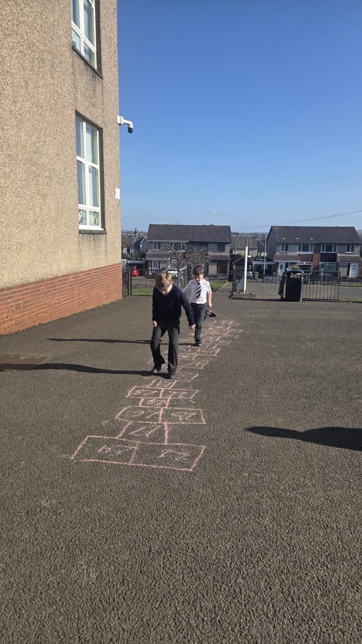 We have been continuing our revision of multiplication tables and related division facts as we continue to learn new Mathematics concepts, such as measuring length. To help with speed when recalling our multiplication stories, we headed outside to draw our own hopscotch. Every time we landed on a square, we had to say a multiplication or division story. Some children gor creative – their partner had to say a multiplication or division question and they skip counted to their answer as the hopped! Children were encouraged to pick a table that they would like to revise and most children picked the tables they have in their Term 2 goals. Well done P4 – keep revising! 👏
