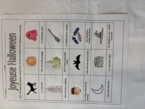In French we have been using our dictionary skills and building on our previous knowledge to find the translation for some spooky words, using a bilingual dictionary to discover the words for each item. We used some of the vocabulary to read and understand a French poem. In lessons, we gave been learning about how French adjectives come after the noun. For example, un chat noir is a black cat. We then had to colour the Halloween pictures correctly, recognising if they were masculine or feminine words and noticing how this can change the spelling of the adjective.