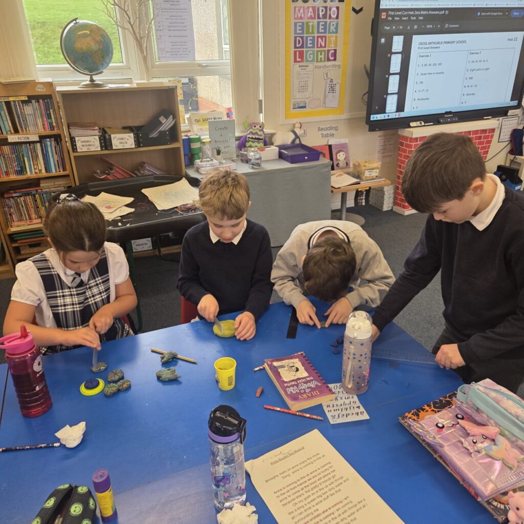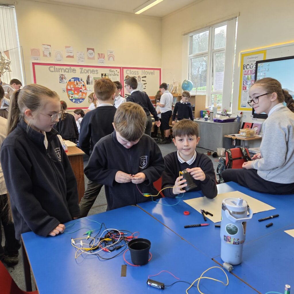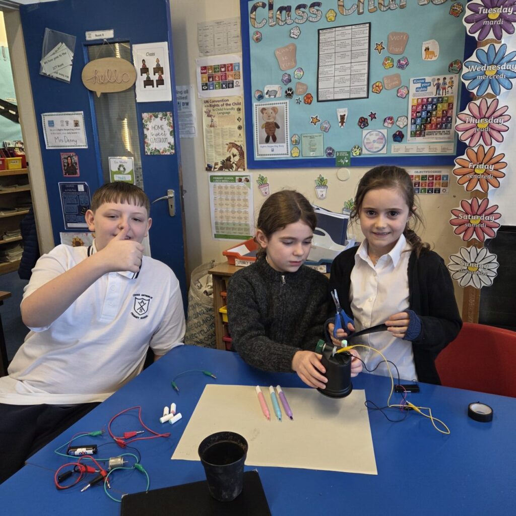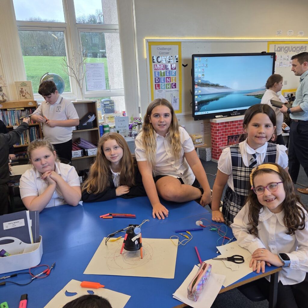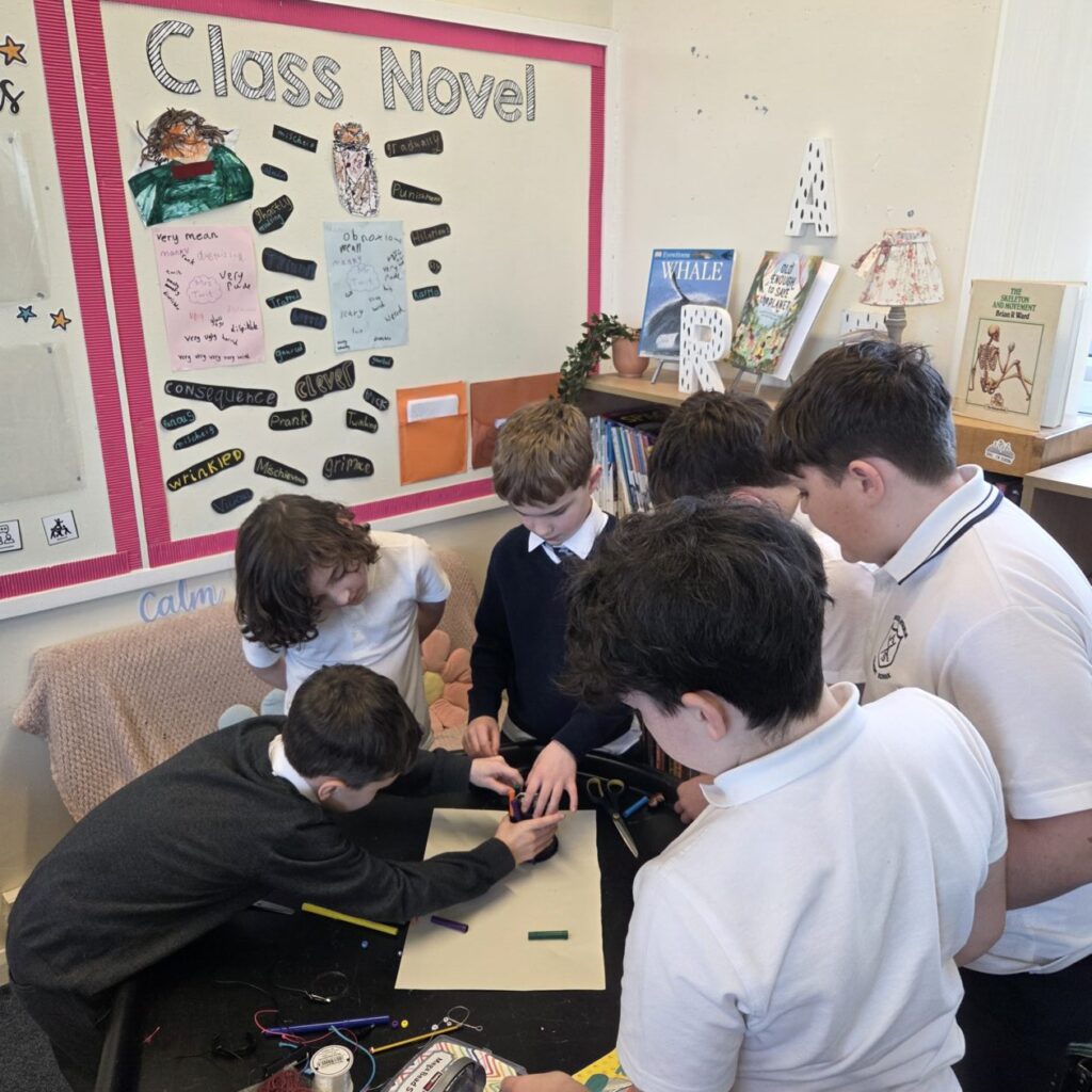 In Science, we worked together with P7 pupils to build Scribblebots. These simple robots would revise our learning from our electricity topic where we built circuits. We have been working on various talking and listening strategies. P4 listened well to P7s instructions and followed them confidently.