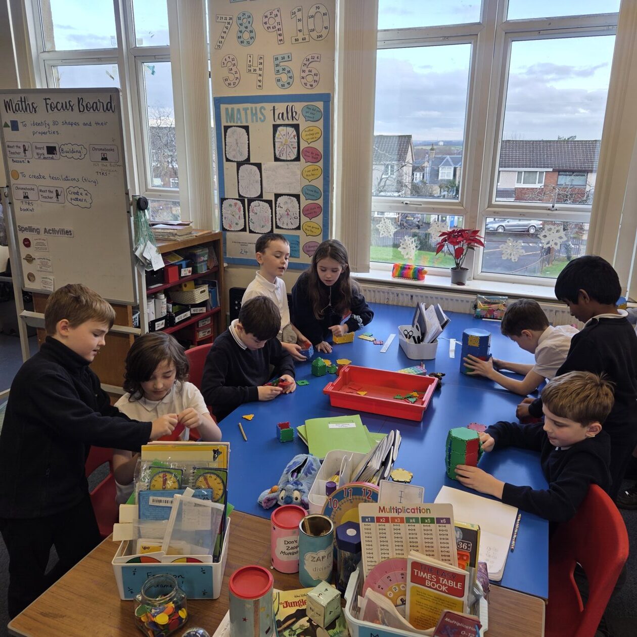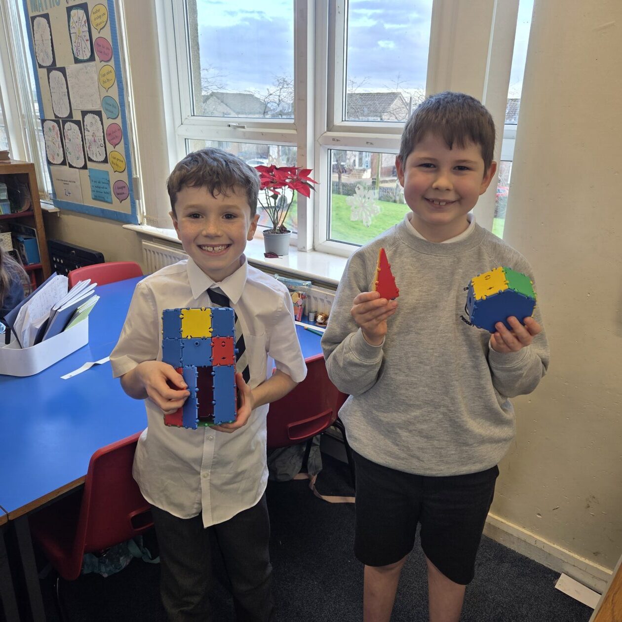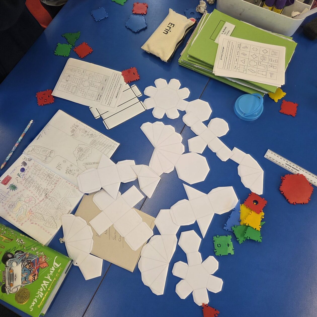 The Squares and Triangles were exploring and identifying more complex 3D shapes. We built shapes, explored their properties and nets, used technology to visualise shapes, and identified them in real life environments. We have also explored patterns within the properties of pyramids and prisms. Lots of great discussion and revision!