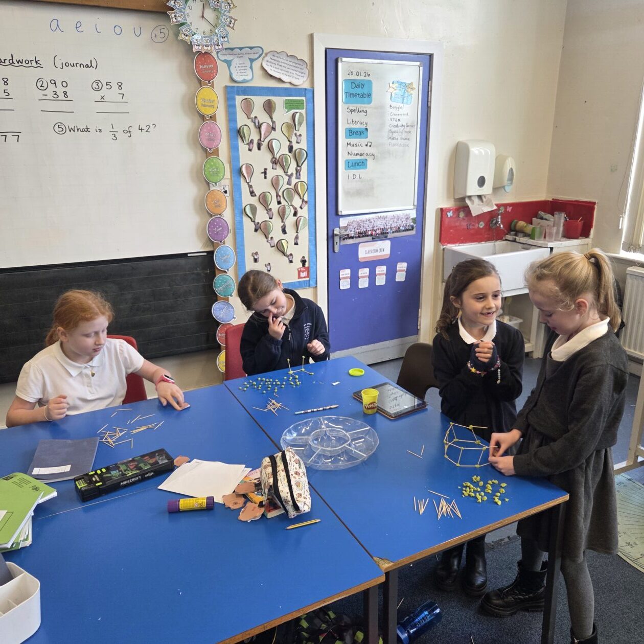 P4.1 have been learning the basics of how to sew with Mrs Denny. We have learned how to thread a needle and sew a running stitch. We also explored tools that help sewing, like pins and thimbles. Our tuff tray and STEM corner had binka material and blunt needles for us to experiment with threading a needle and creating a running stitch.
