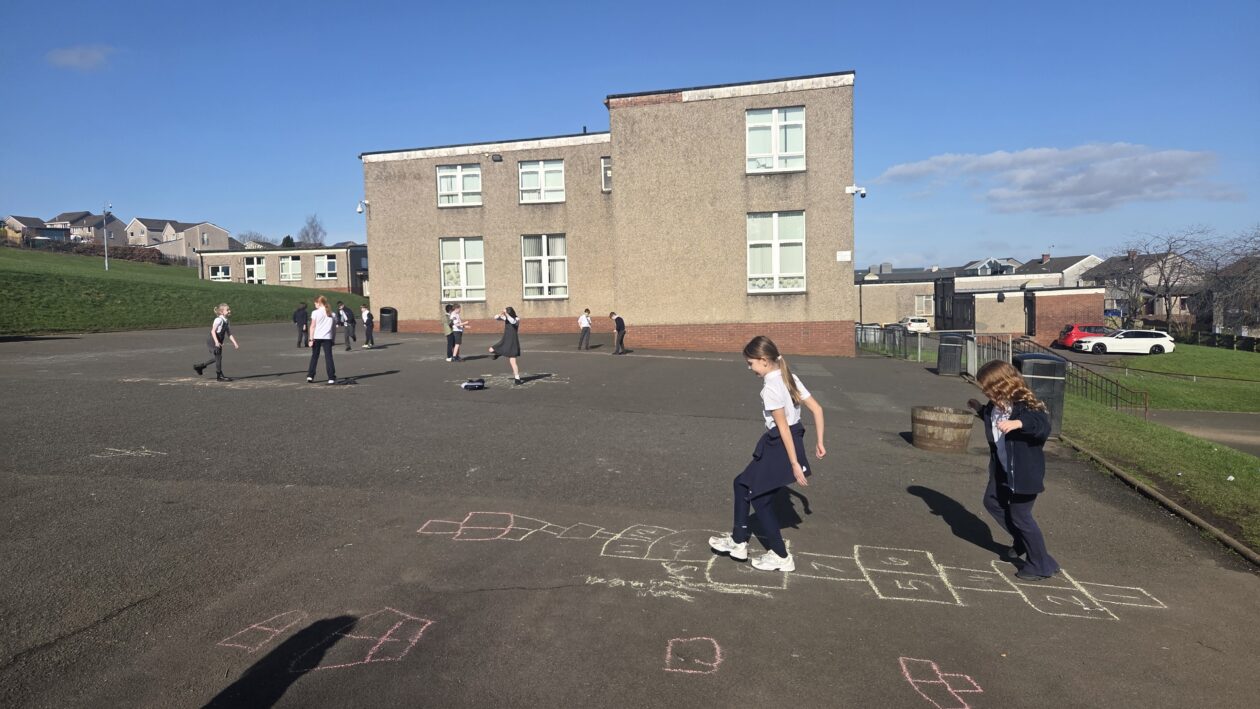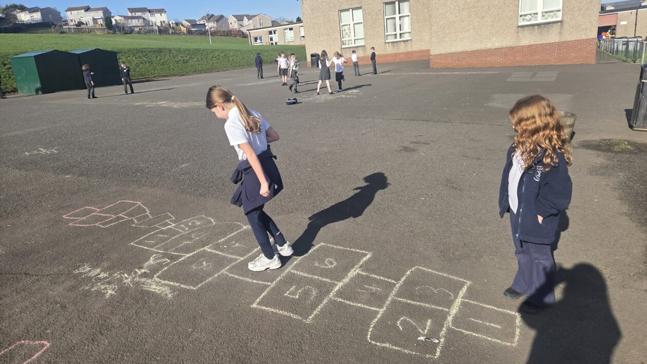 We have been continuing our revision of multiplication tables and related division facts as we continue to learn new Mathematics concepts, such as measuring length. To help with speed when recalling our multiplication stories, we headed outside to draw our own hopscotch. Every time we landed on a square, we had to say a multiplication or division story. Some children gor creative – their partner had to say a multiplication or division question and they skip counted to their answer as the hopped! Children were encouraged to pick a table that they would like to revise and most children picked the tables they have in their Term 2 goals. Well done P4 – keep revising! 👏
