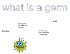 First we have been learning about what germs are, different types of germs and diseases, how germs are spread and how to prevent the spread. At the computer suite we used google drawing to make a poster to explain what a germ is and the names of 2 different types of germs:
