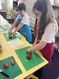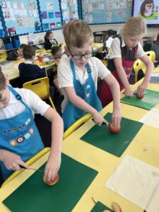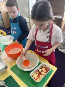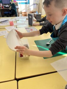 We started our Scottish Farming topic which began with Fred the Farmer writing a letter to ask if we would look after his farm while he was on holiday. He set us the challenge of finding out about the different types of farming and what the role of a farmer is. We created our own farmer character to add to the small world.