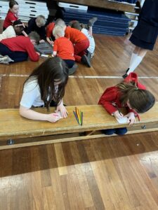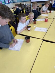 We went on a senses walk around the school and took notes on what we could hear, see, feel and smell.