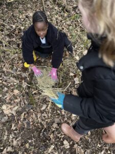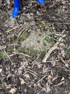 After researching some facts about hedgehogs and what their habitat is like, we decided to use natural materials found in our school grounds to make a hedgehog house. We worked in teams to collect materials like sticks and leaves, and then worked together to build the habitat.