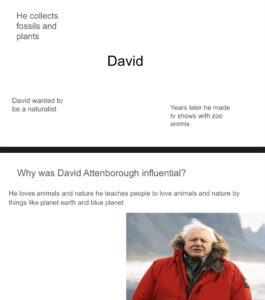 In social studies, we have each chosen a person from the past that we wanted to know more about. We researched some facts about them and learned what they did that was inspirational. At the computer suite we created a PowerPoint to display the information we found out.