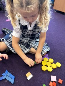 In maths, we have been learning and improving lots of new skills including measuring, creating patterns, place value and problem solving.