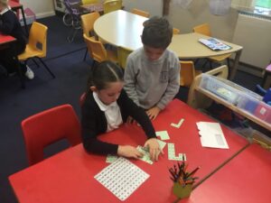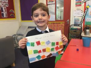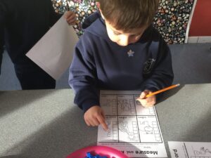 In Numeracy we have started learning about numbers up to 100 and we have been doing lots of measuring and creating patterns.