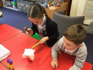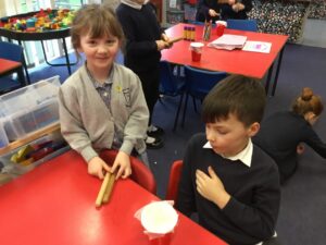 In Science we are learning how to investigate sound. So far, we have researched the human ear and can name the main parts of the ear. We also experimented sound vibrations using rice and instruments. When we made the loud noises we could see the rice jumping up with the vibrations. It was fun making so much noise!! 🥁 🍚 🎶