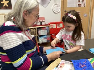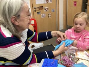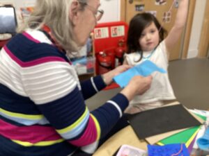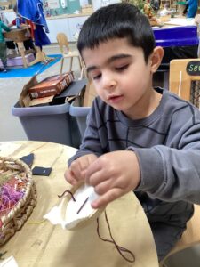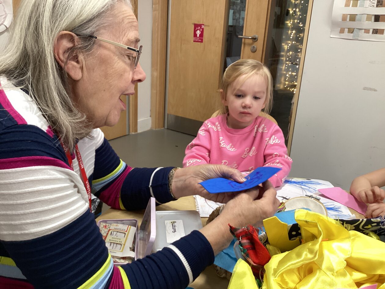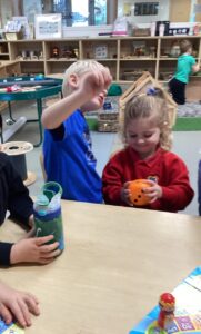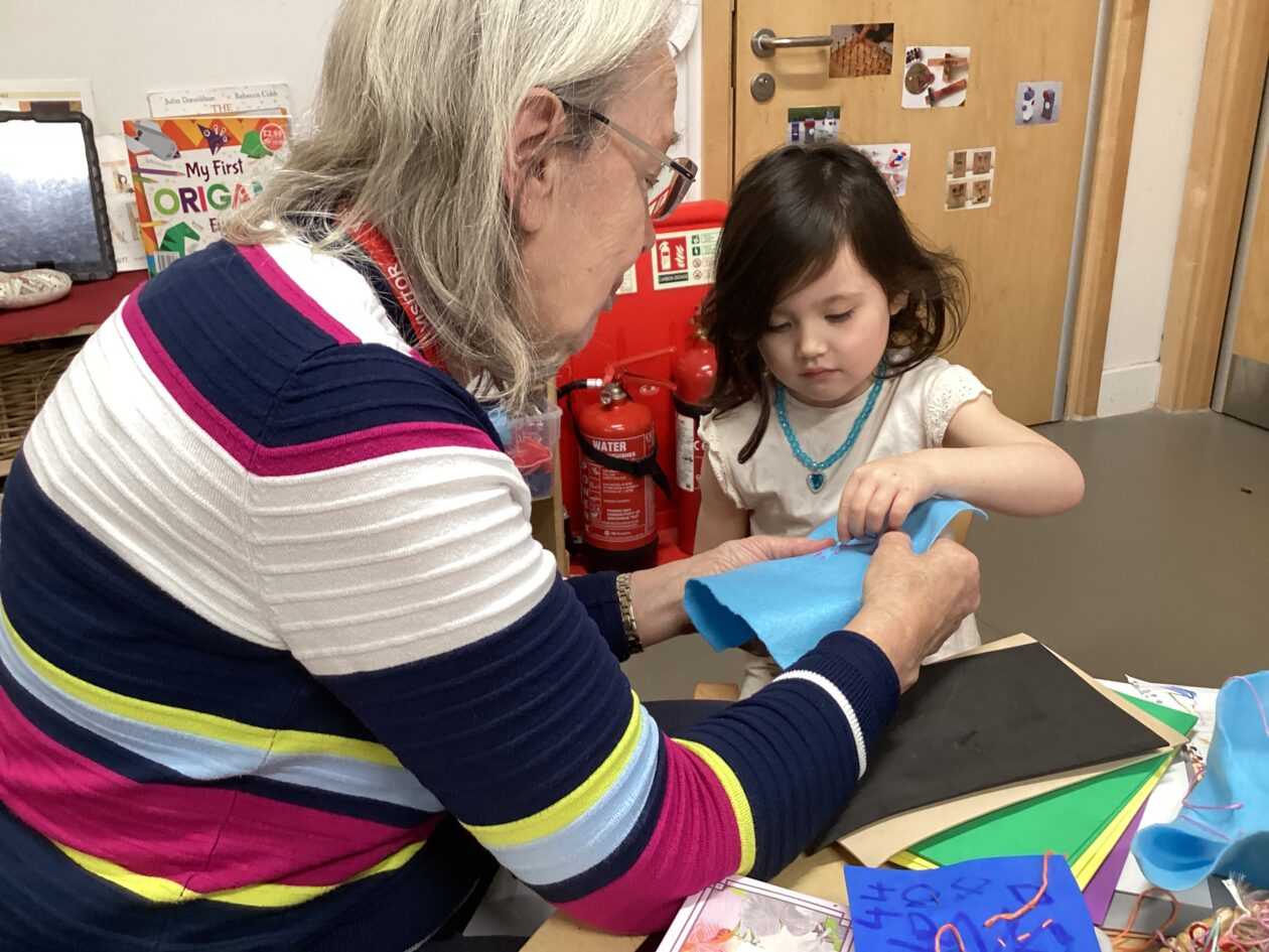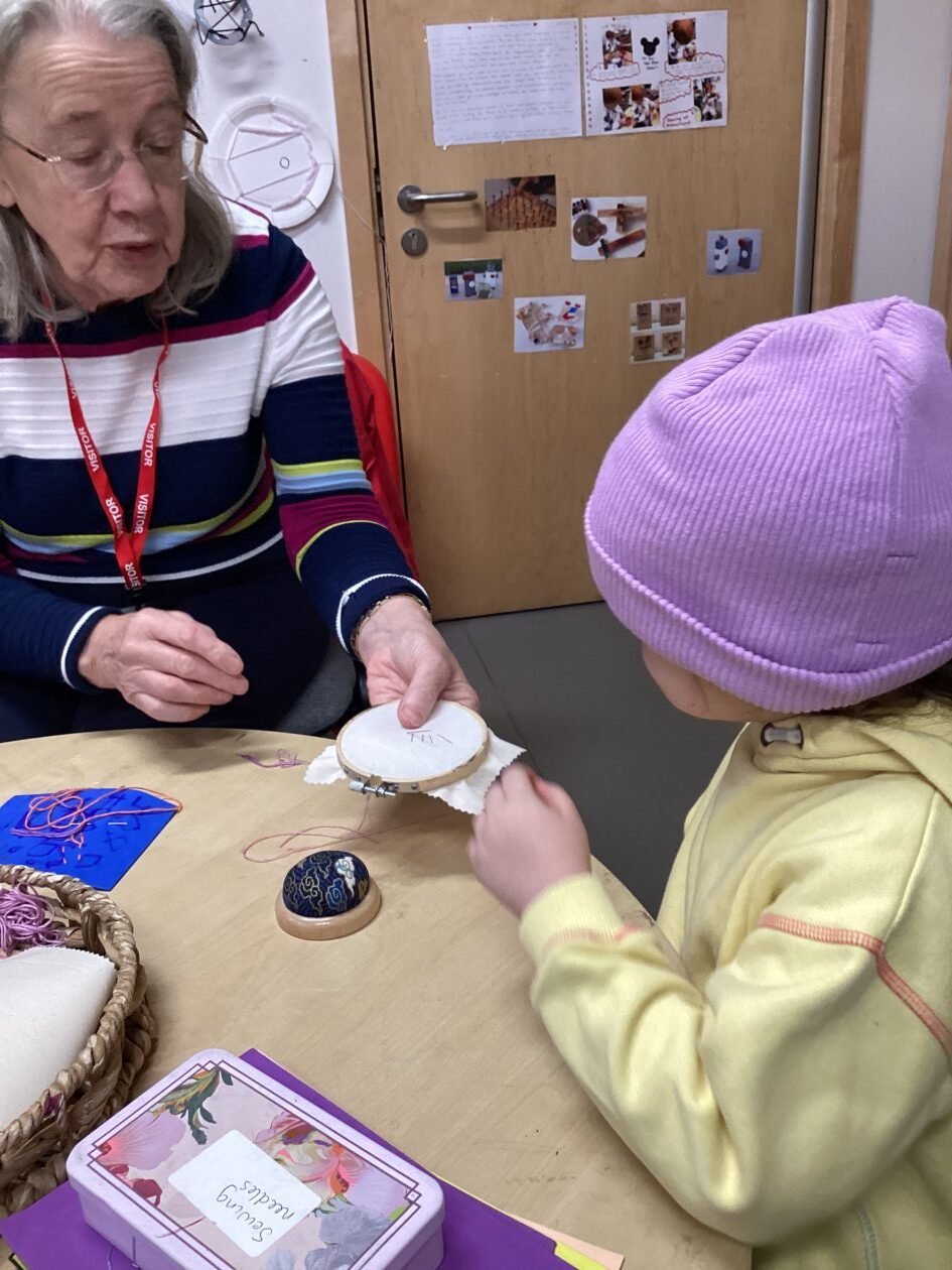 We have also had a special visitor to the sewing area, we have been very lucky to have a grandparent of one of our children come in and teach us about sewing, we have been learning the names of different tools used in sewing and all about being safe with needles. Thank you so much for coming in and teaching us!