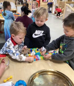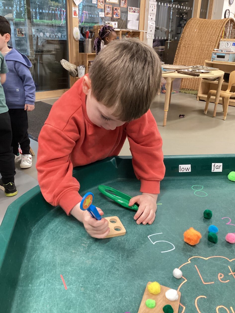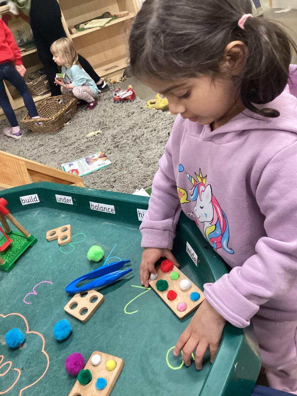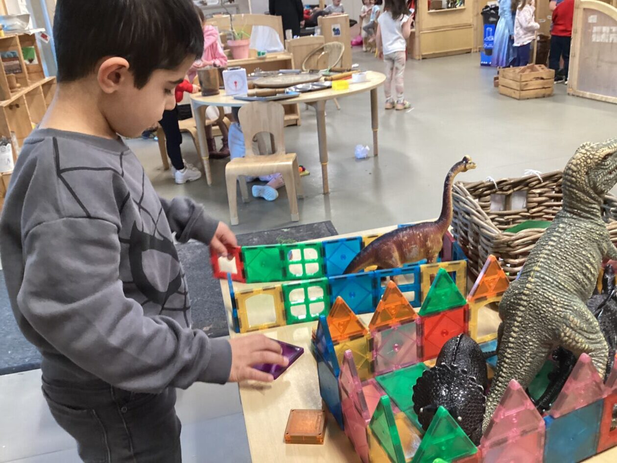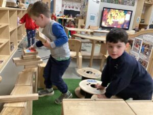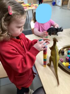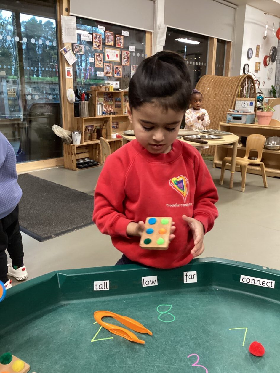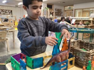 In our discovery area this week the children have been building with both magnets and cubes. Both of these help foster core developmental skills. Children engage in critical thinking, problem solving, logical reasoning and learning through trial and error. They are both open ended toys, allowing children to express themselves and build a limitless variety of structures, from castles to spaceships. They are also great for fine motor skill development and hand eye coordination. Building also introduces STEM which offer hands-on introductions to basic principles of science (gravity, magnetism), technology, engineering (balance, stability), and mathematics (geometry, patterns, symmetry, measurement).