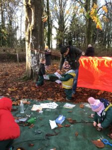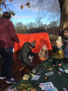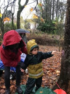We have had a wonderful and somewhat wet time out at woodland this week and had the pleasure of welcoming some of our parents to join us on our woodland adventures! Here are some pictures of our pop in and play woodland sessions.