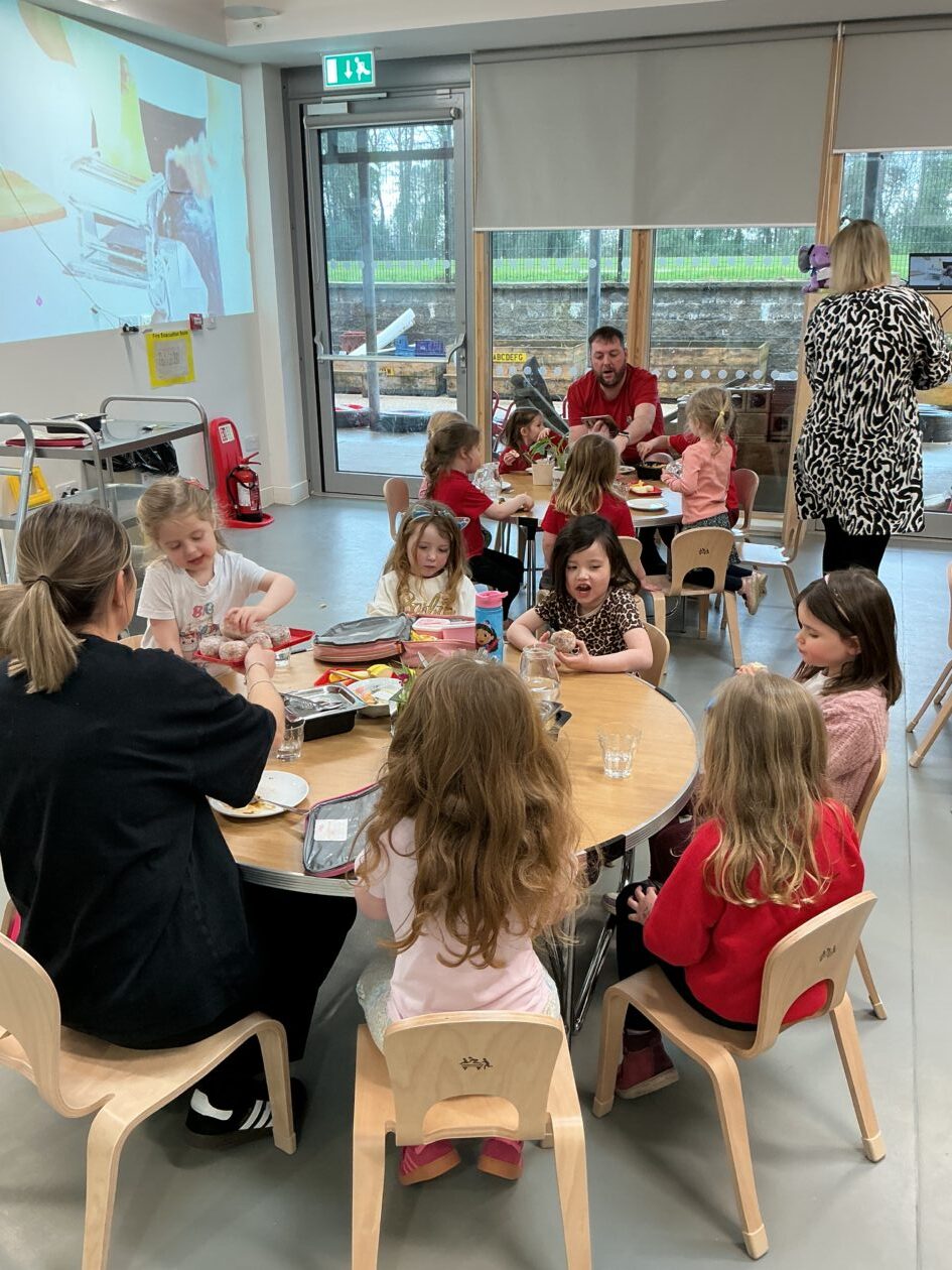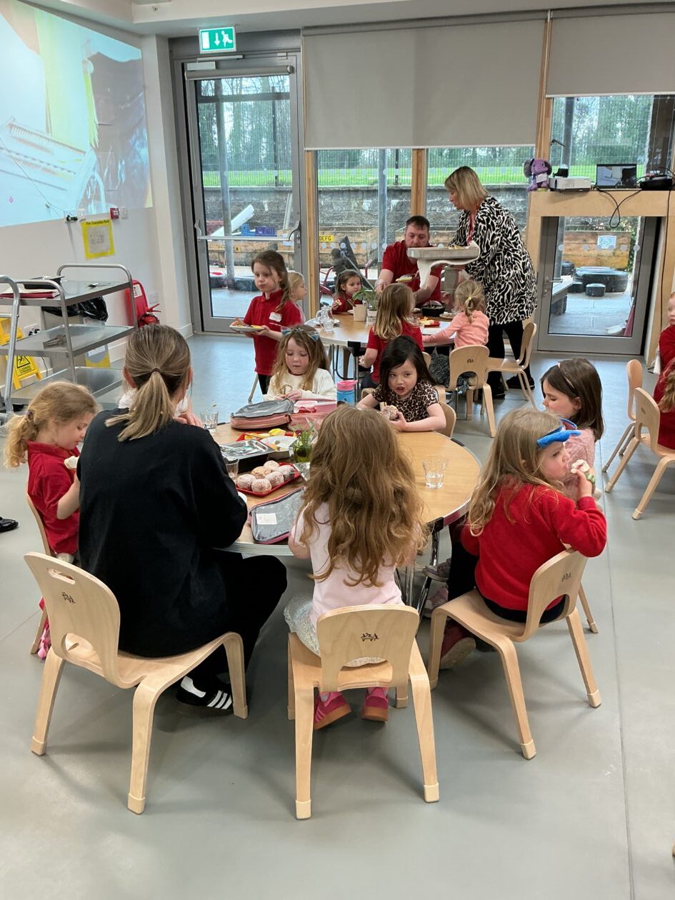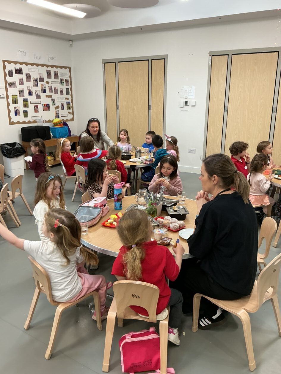 Another lovely change is our new circular table seating. Children now sit together around round tables with a member of staff at each one. This creates a calm, family-style environment where staff can support conversations, encourage good table manners, and ensure everyone feels included.