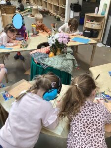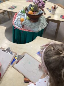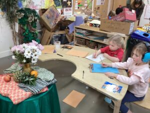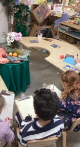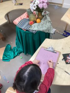 This week in the art area the children have been exploring still life compositions and demonstrated great focus and concentration as they used their observation skills to capture the various visual elements such as line, colour and pattern. We discussed why people made paintings this way and looked at some work of some famous artists and talked about what we liked and didn’t like about their work.