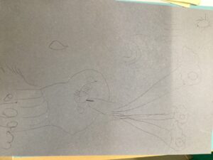 The children also explored life drawing and attempted to replicate our enthusiastic model Mrs Mundagie. The children spent a prolonged period of time doing this and we discussed what some of the visual elements might mean.