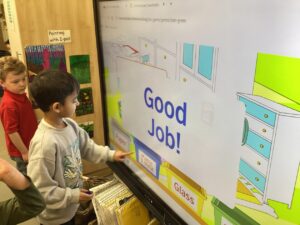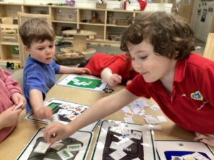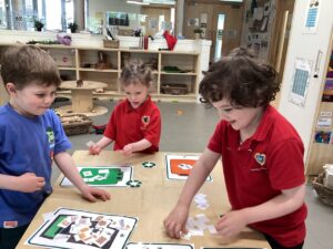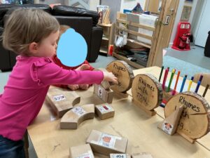 We have also been exploring rhyme through blocks and matching them to build a rhyme tower. The children have been working on listening to the different sounds in words and identifying sounds that are similar.