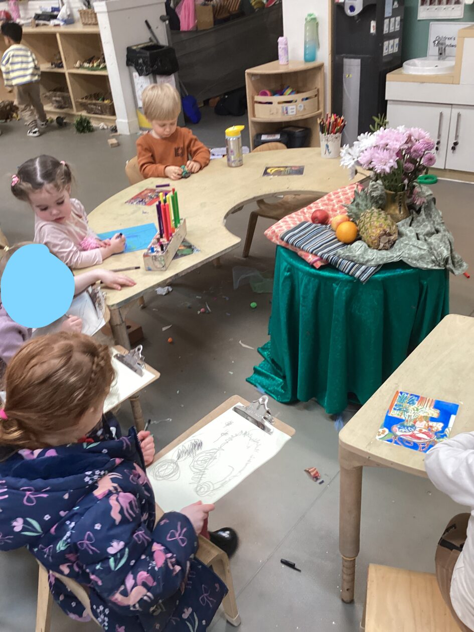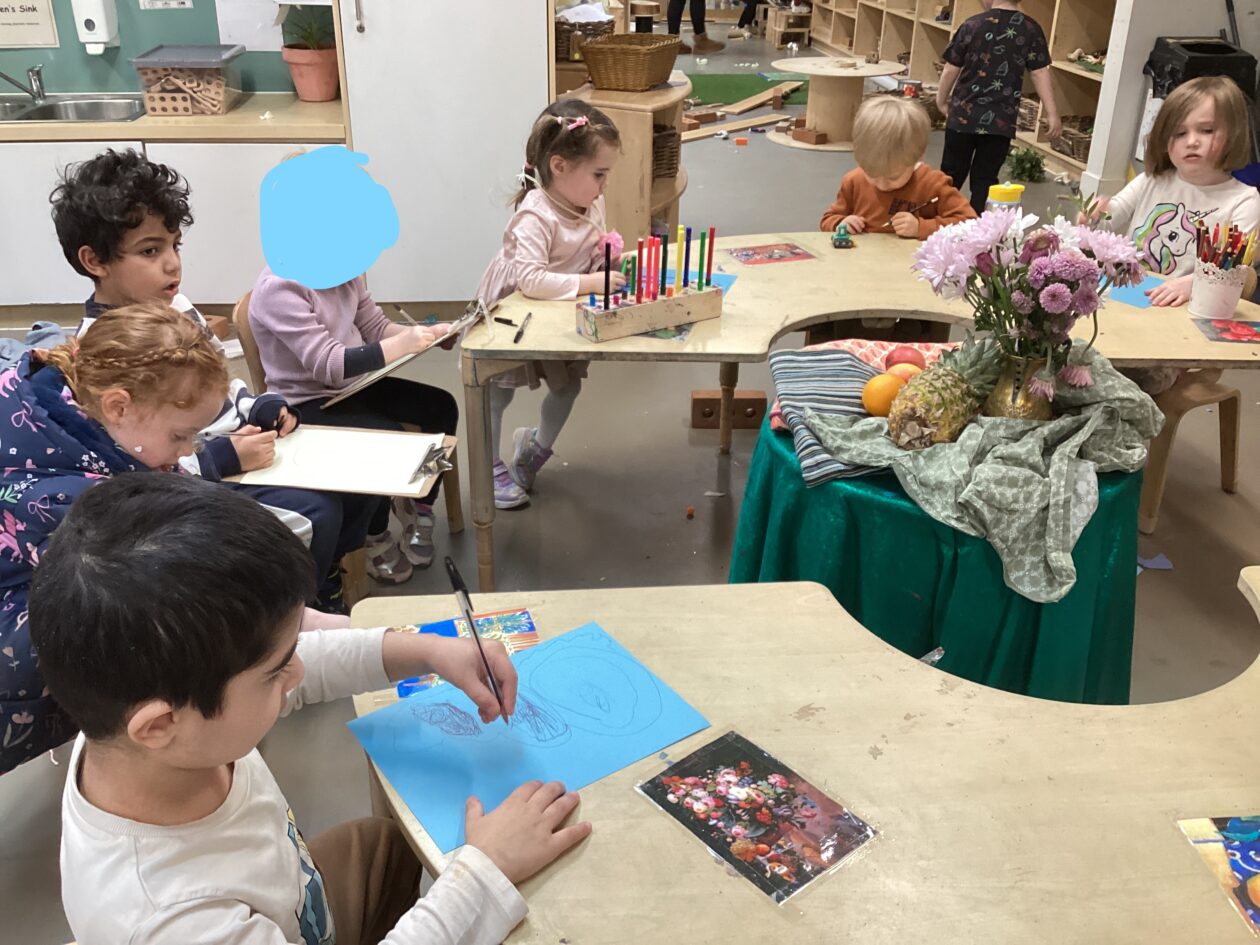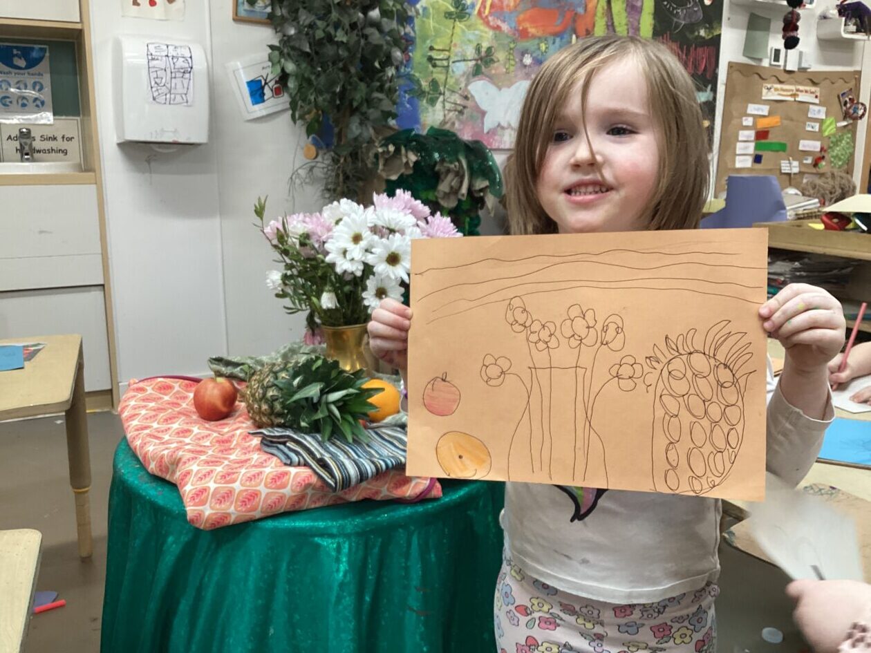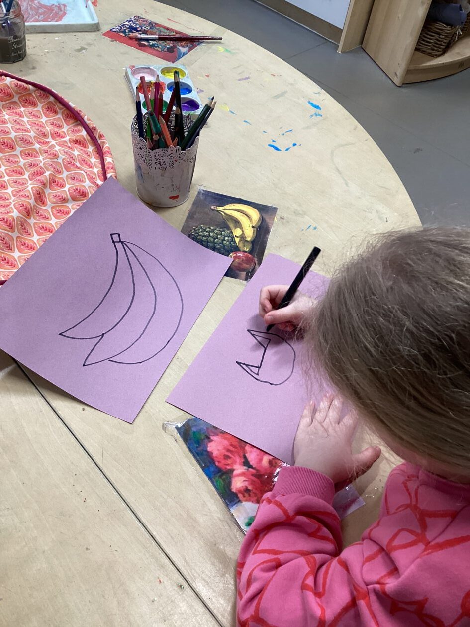 This week in the art area the children have been exploring still life compositions and demonstrated great focus and concentration as they used their observation skills to capture the various visual elements such as line, colour and pattern. We discussed why people made paintings this way and looked at some work of some famous artists and talked about what we liked and didn’t like about their work.
