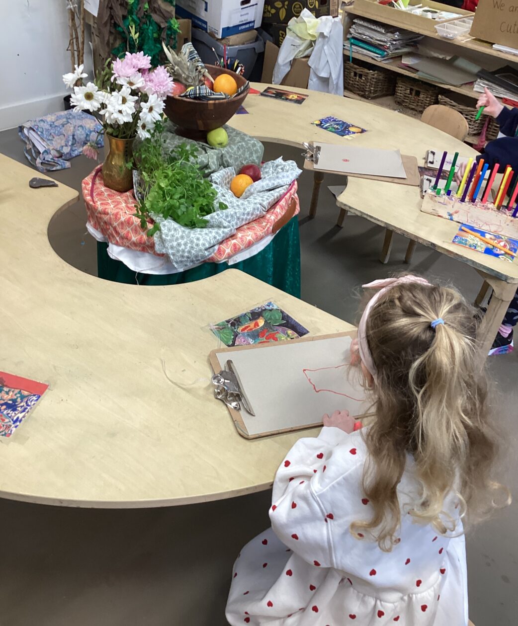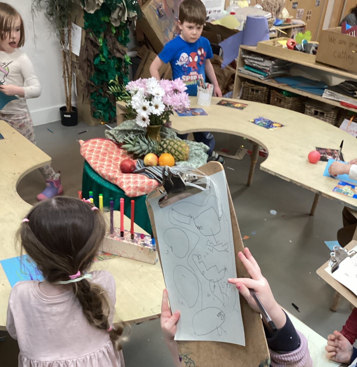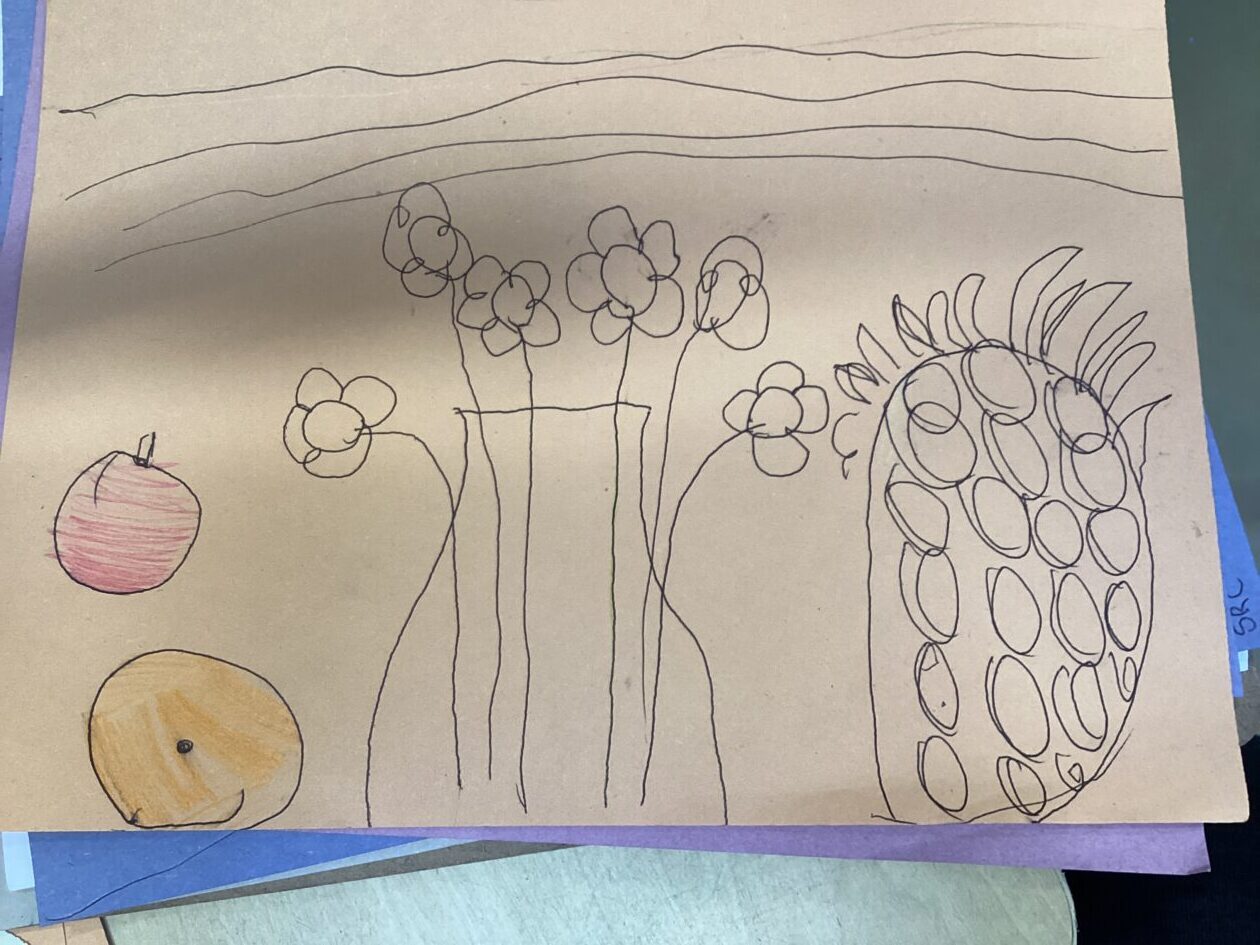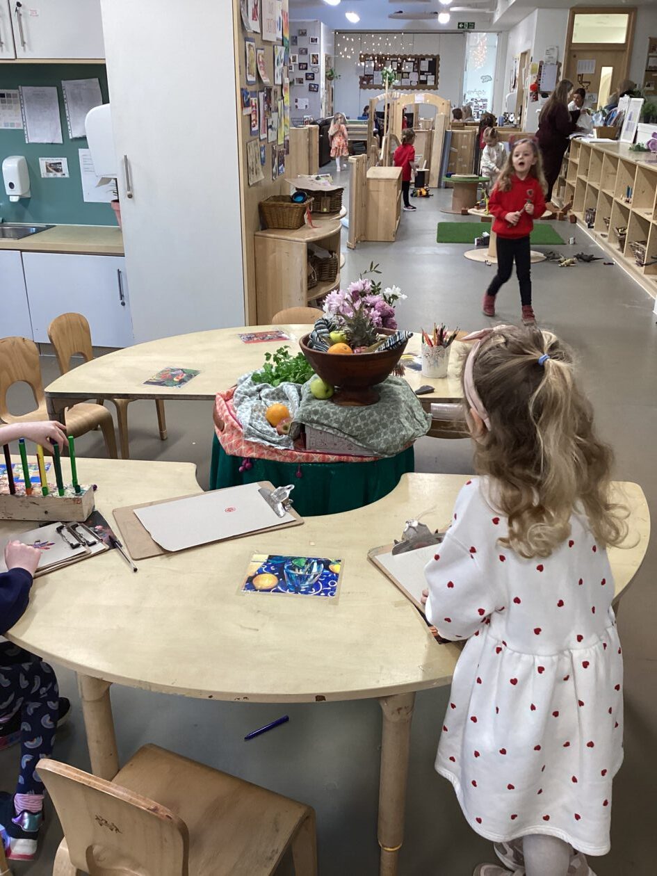 This week in the art area the children have been exploring still life compositions and demonstrated great focus and concentration as they used their observation skills to capture the various visual elements such as line, colour and pattern. We discussed why people made paintings this way and looked at some work of some famous artists and talked about what we liked and didn’t like about their work.