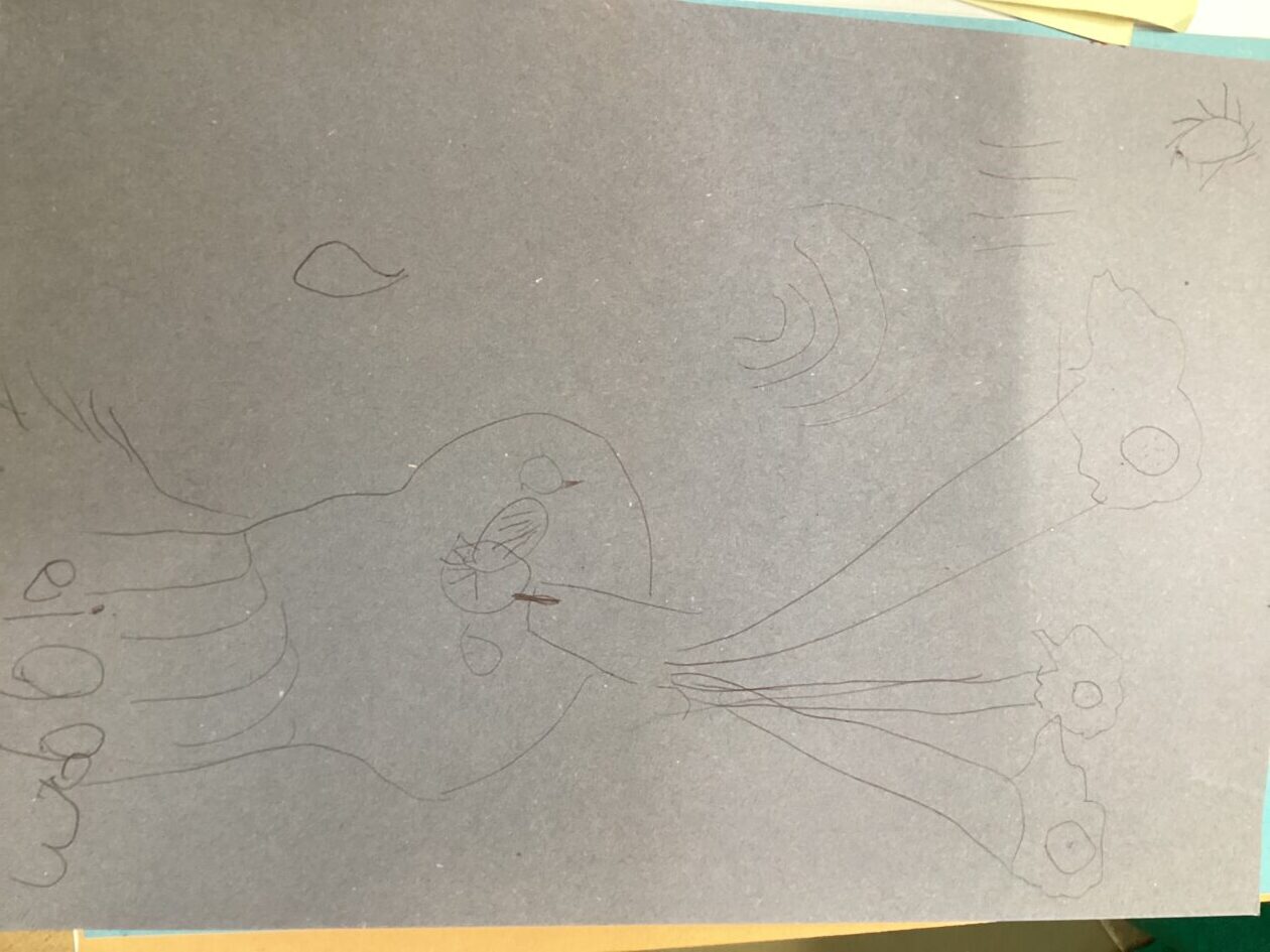 The children also explored life drawing and attempted to replicate our enthusiastic model Mrs Mundagie. The children spent a prolonged period of time doing this and we discussed what some of the visual elements might mean.