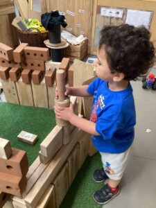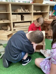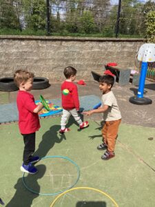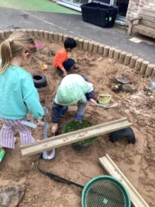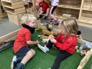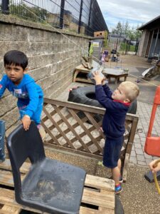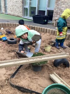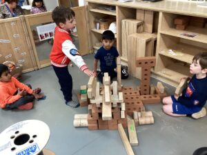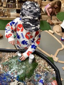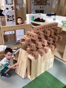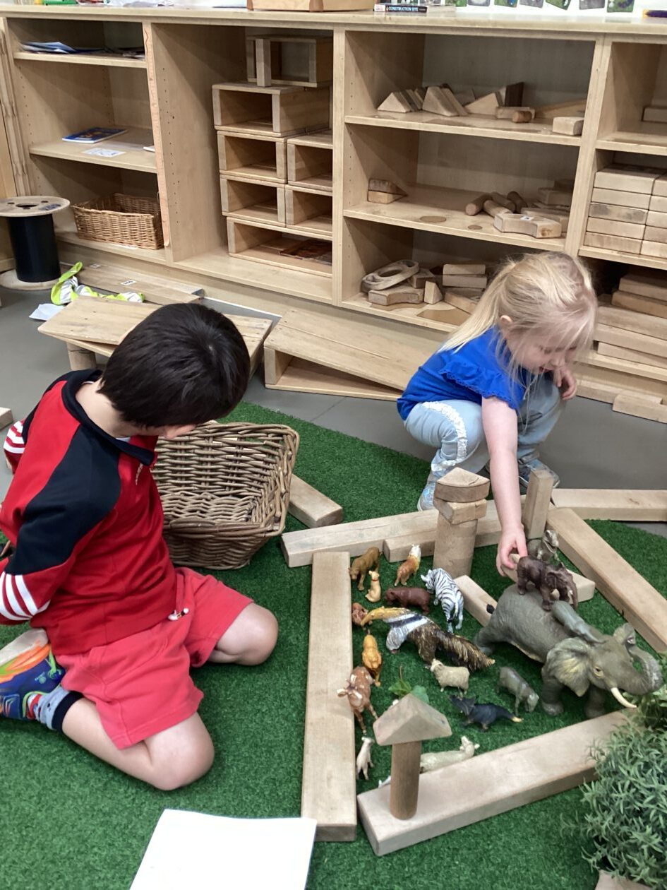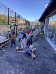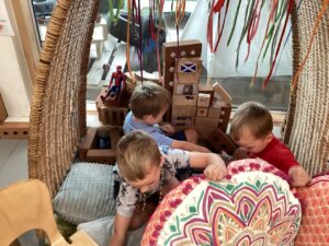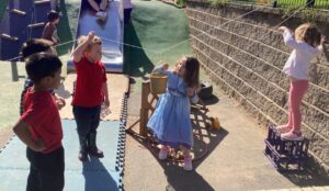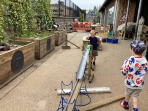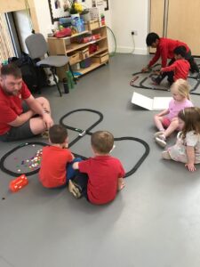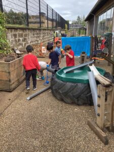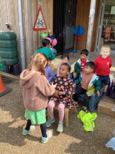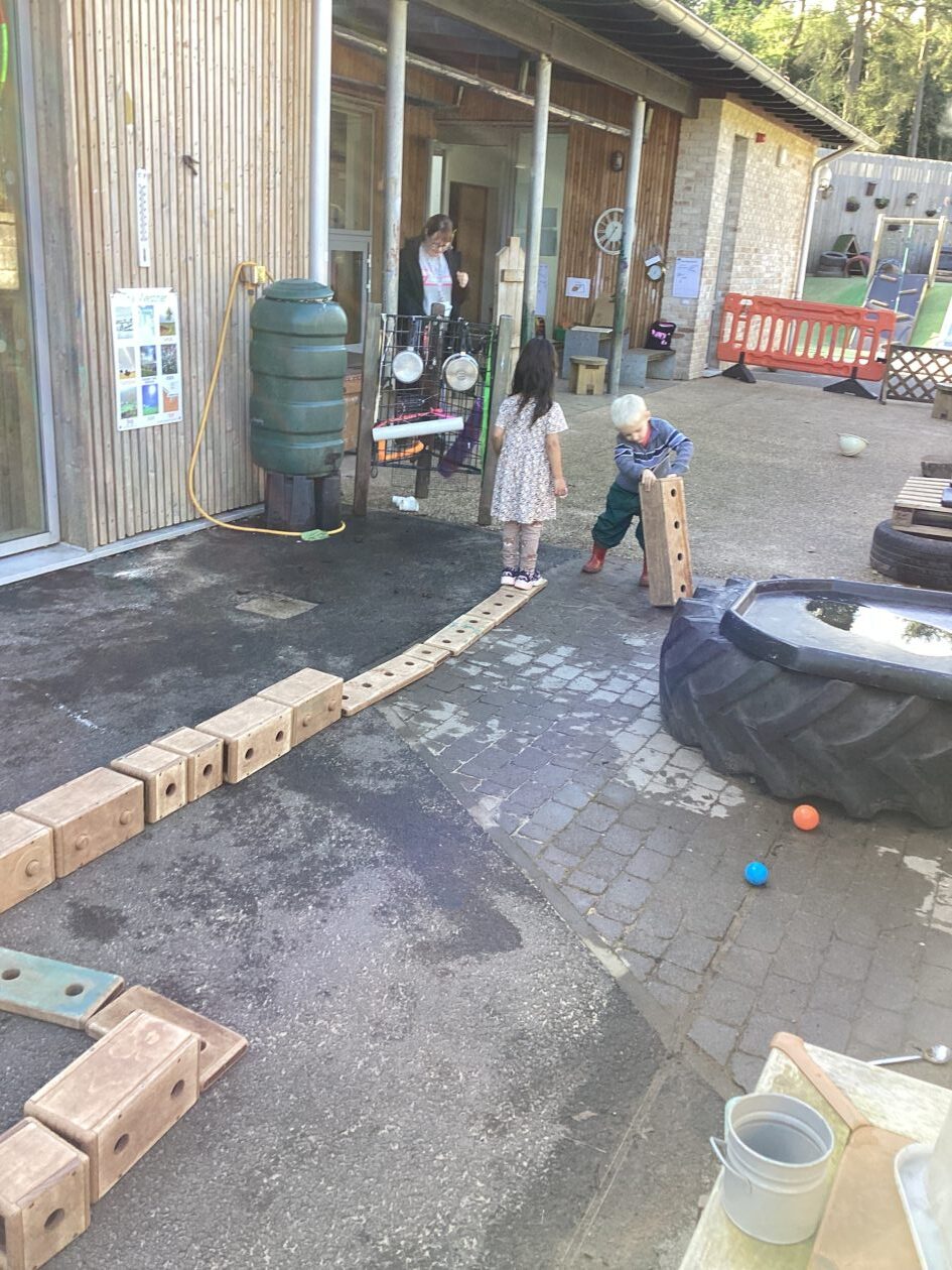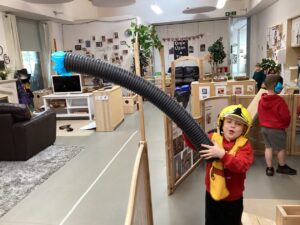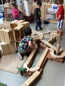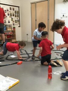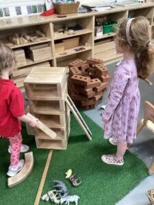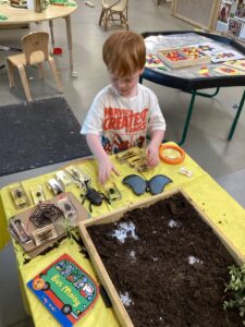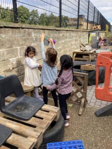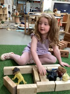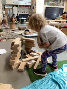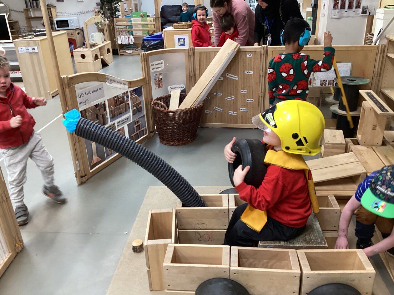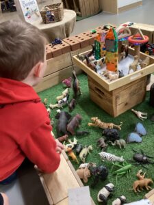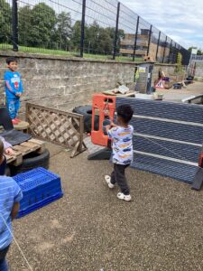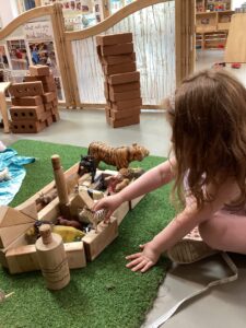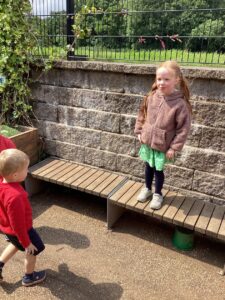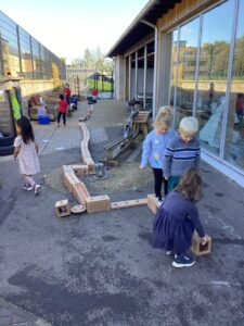 In the block and small world areas this week, children have continued to build many different types of vehicles such as boats, cars and trains.  This has been developing their collaborative skills and language skills.  Their buildings have become increasingly more complex with lots of details. There has been lots of imaginative storytelling in small world that supports developing friendships. The children have been regularly risk assessing our area to check that it is safe for play.