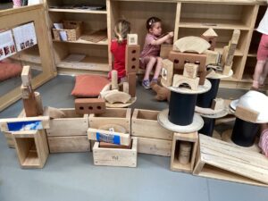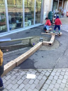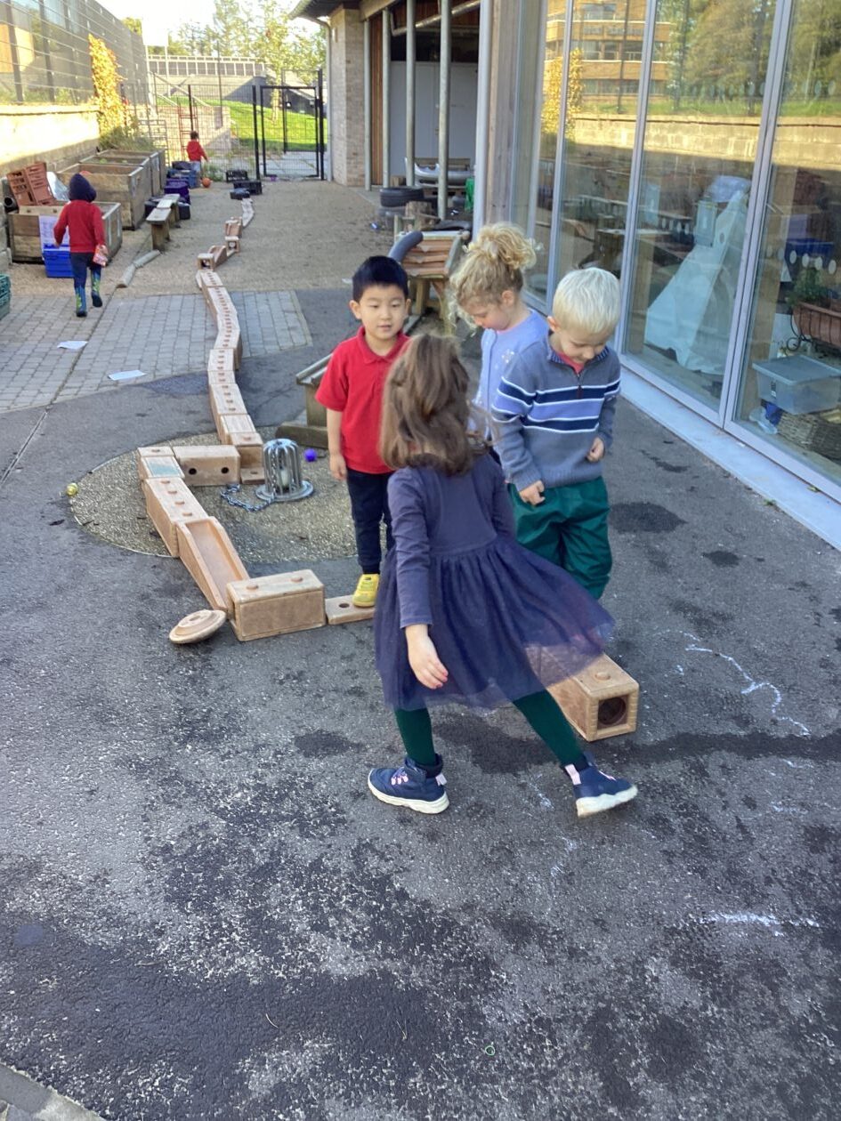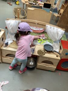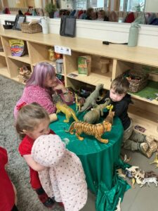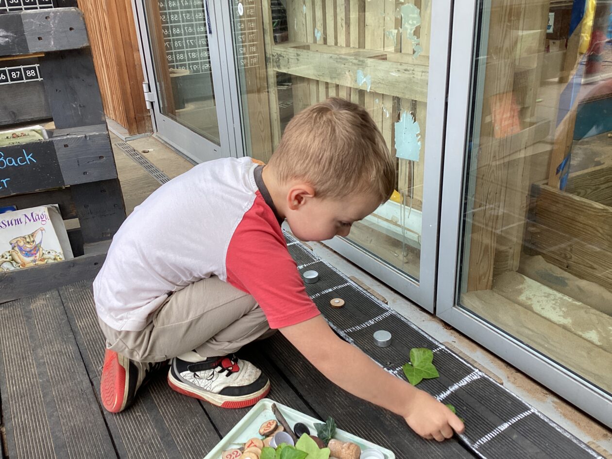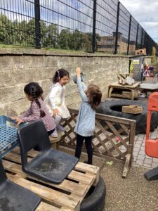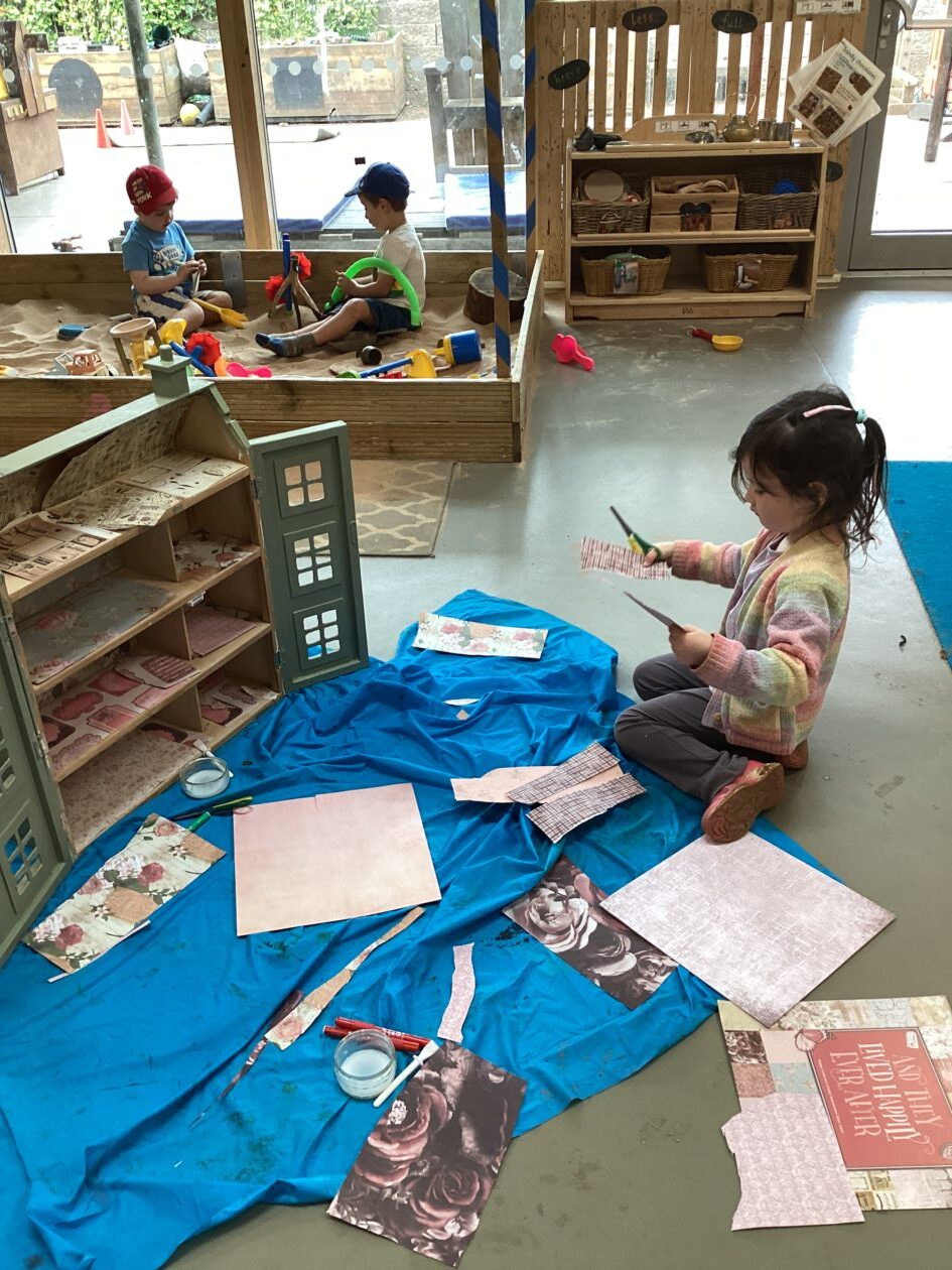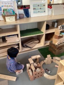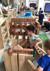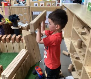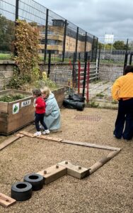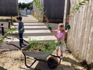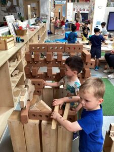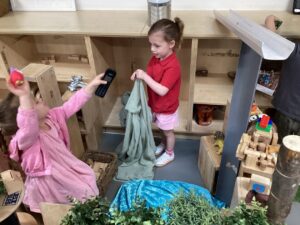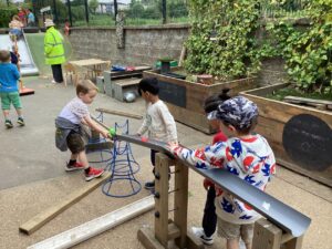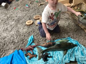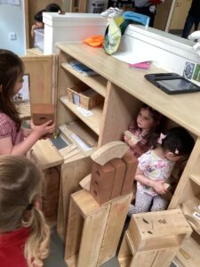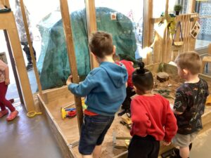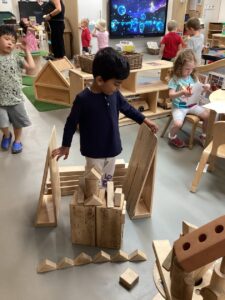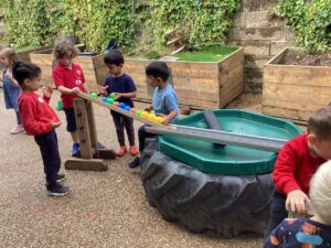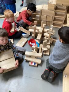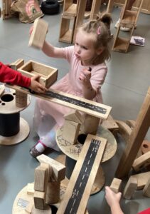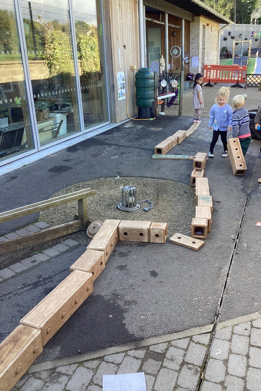 In the block and small world areas this week, children have continued to build many different types of vehicles such as boats, cars and trains.  This has been developing their collaborative skills and language skills.  Their buildings have become increasingly more complex with lots of details. There has been lots of imaginative storytelling in small world that supports developing friendships. The children have been regularly risk assessing our area to check that it is safe for play.
