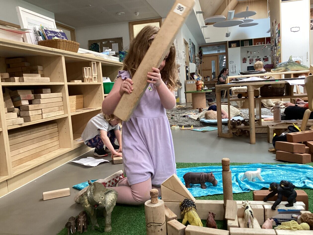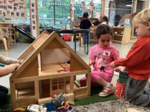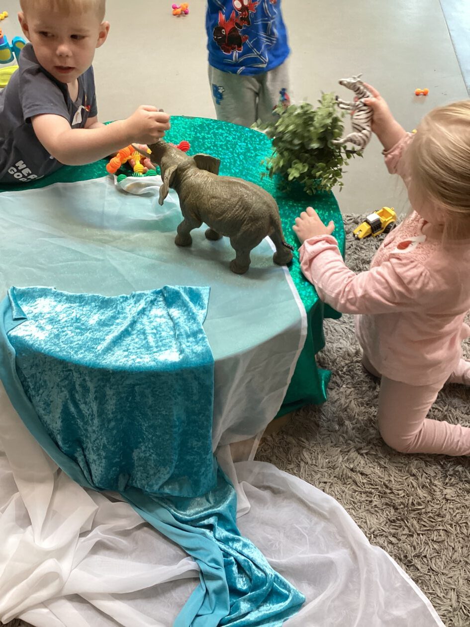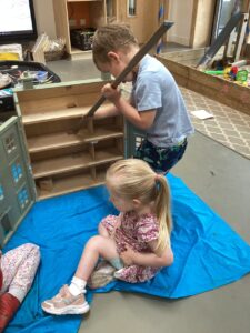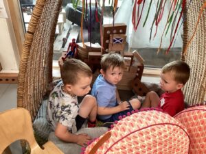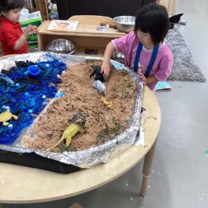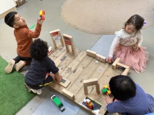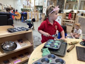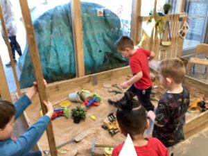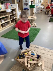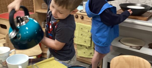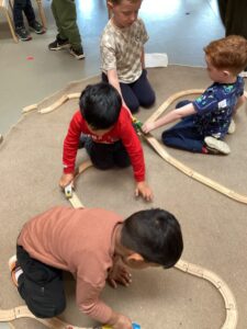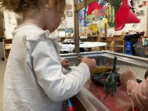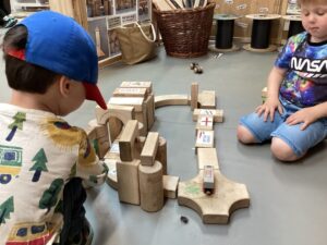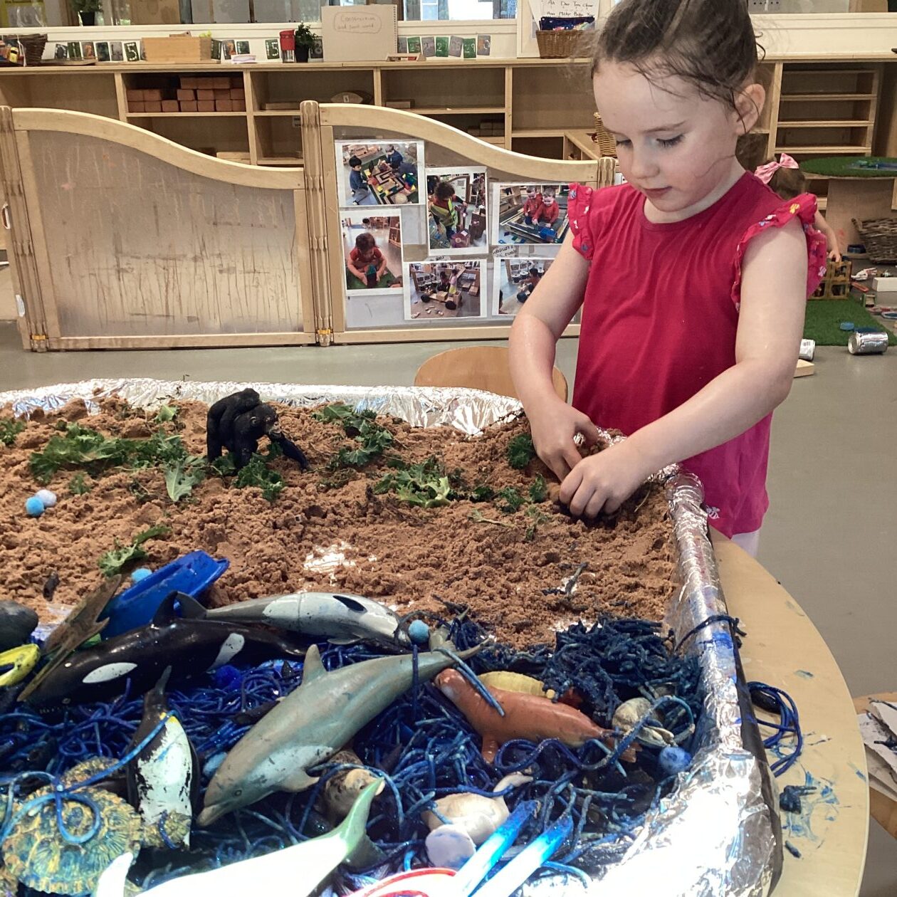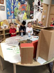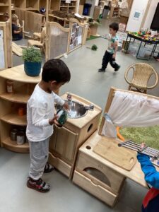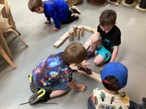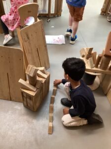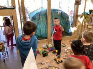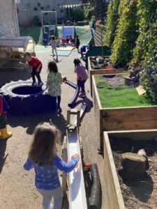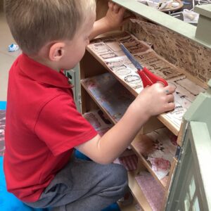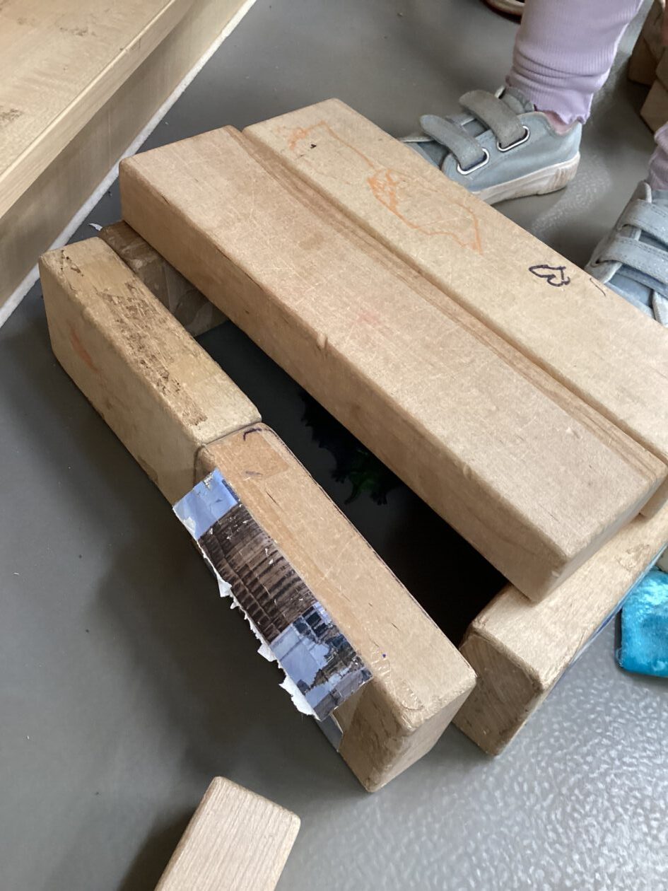 In the block and small world areas this week, children have continued to build many different types of vehicles such as boats, cars and trains.  This has been developing their collaborative skills and language skills.  Their buildings have become increasingly more complex with lots of details. There has been lots of imaginative storytelling in small world that supports developing friendships. The children have been regularly risk assessing our area to check that it is safe for play.