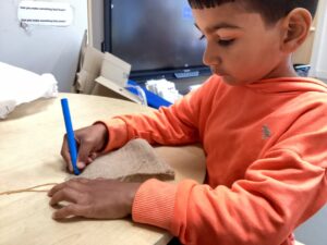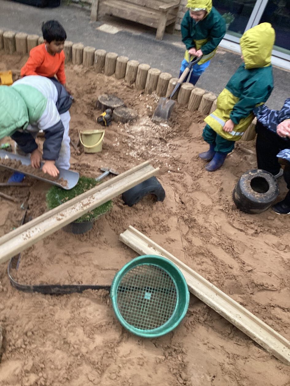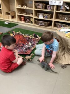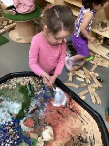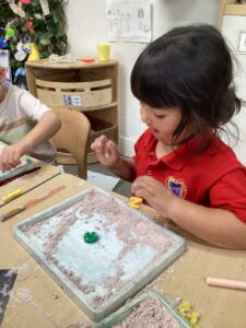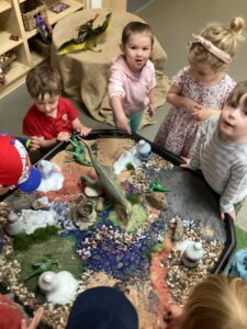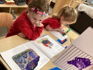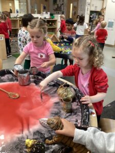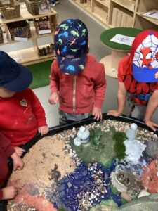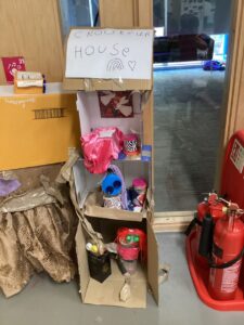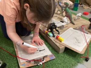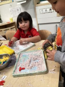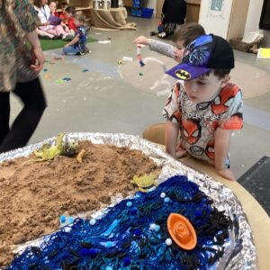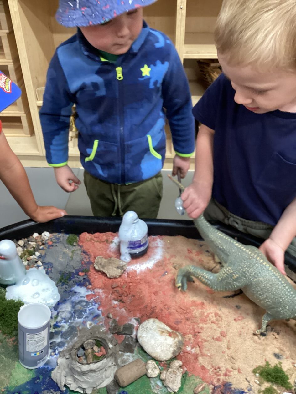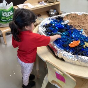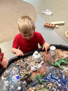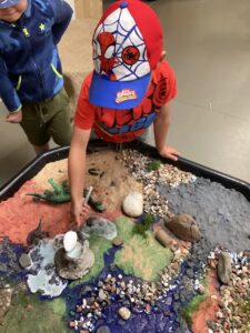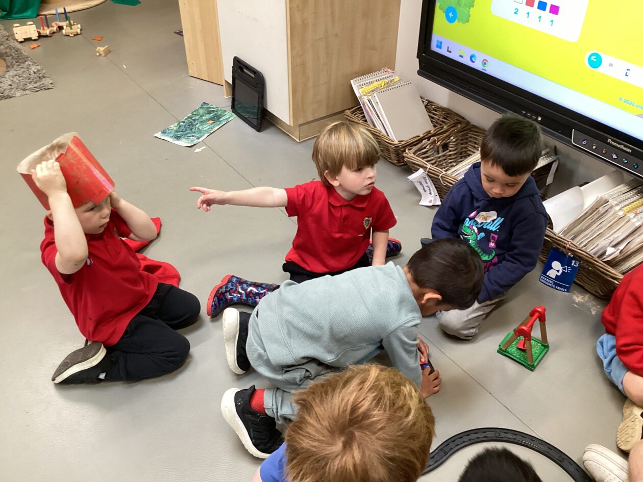 This week many children have been talking and building different types of transport such as trains, F1 cars and camper vans. This has led to lots of mark making, creating maps and signs for the vehicles. We have also engaged imaginatively with the volcano that we made, creating lots of narrative about lava monsters and developing new vocabulary such as ‘extinct’. We are beginning to explore a sense of belonging, discussing houses, cities and structures within our community.