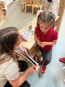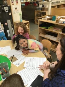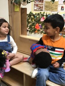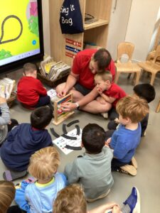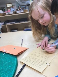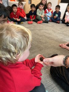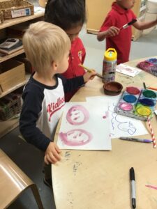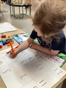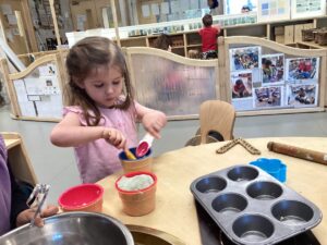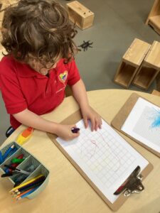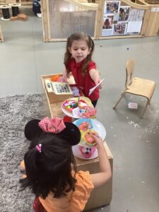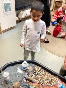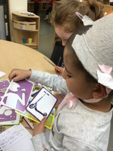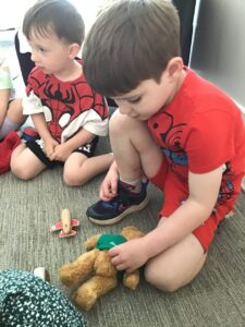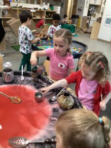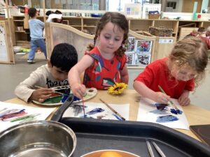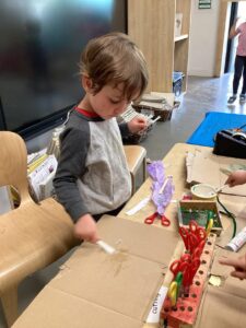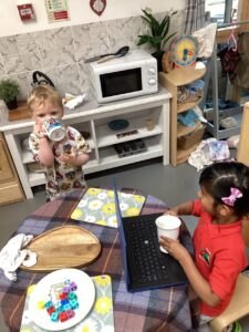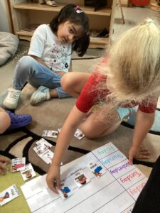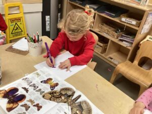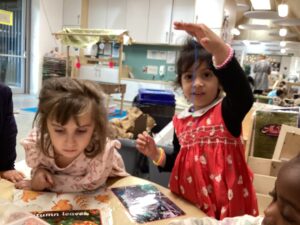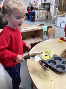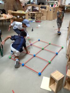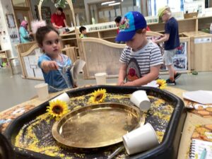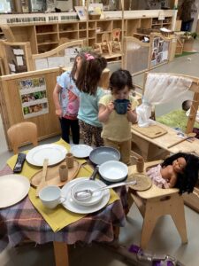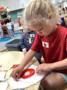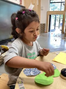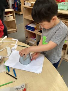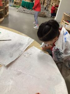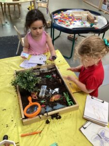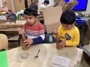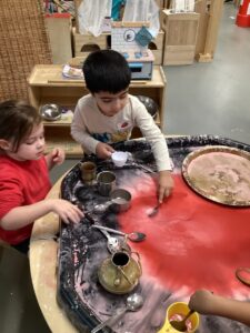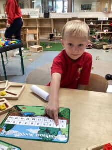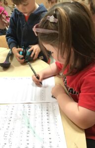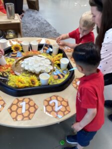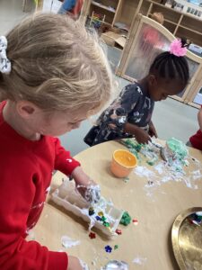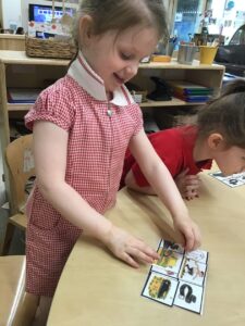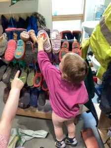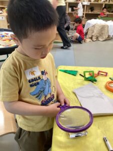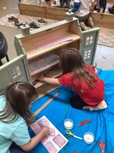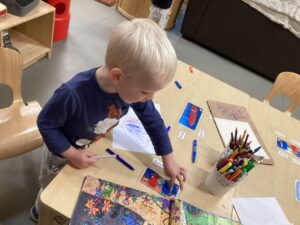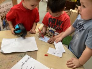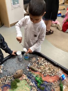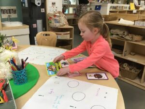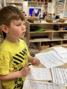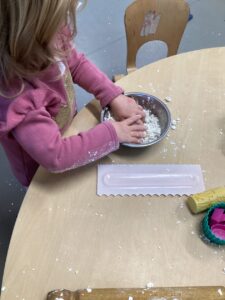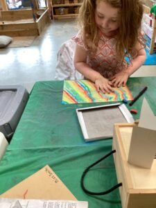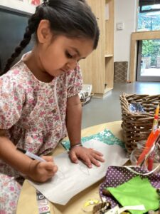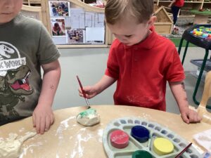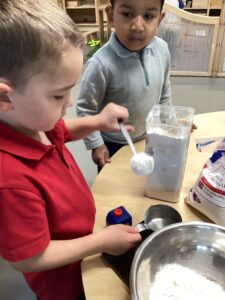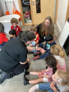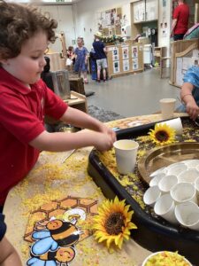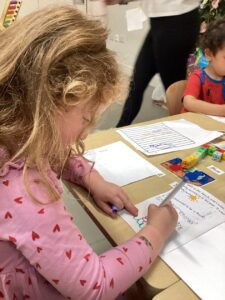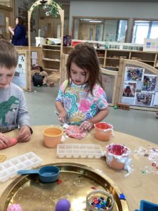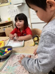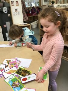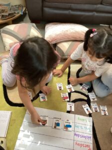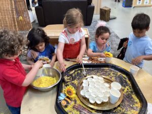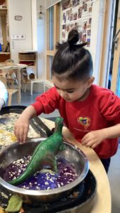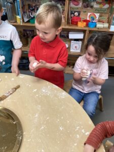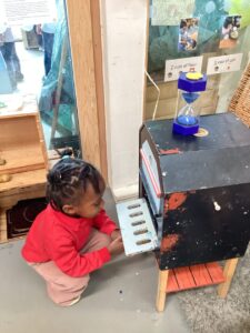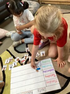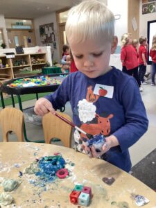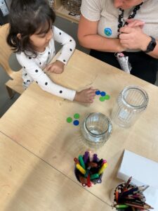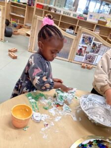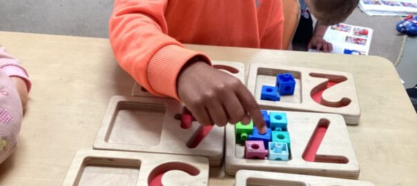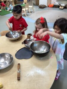 This week in the sewing area the children wanted to make their own bracelets for themselves and their friends. They concentrated and persevered as they worked to thread the beads onto the string. We are also beginning to learn to tie knots as we secured our bracelets on to our wrists.