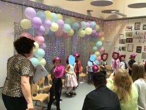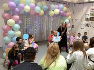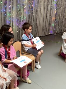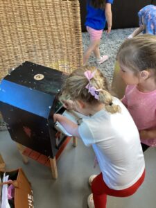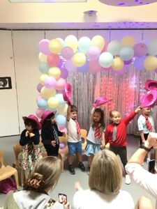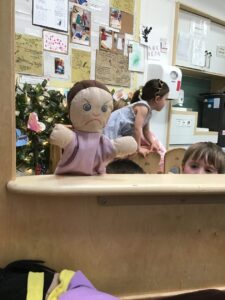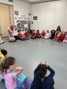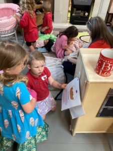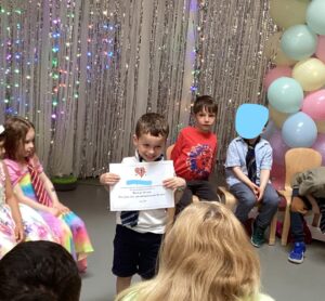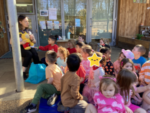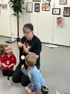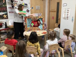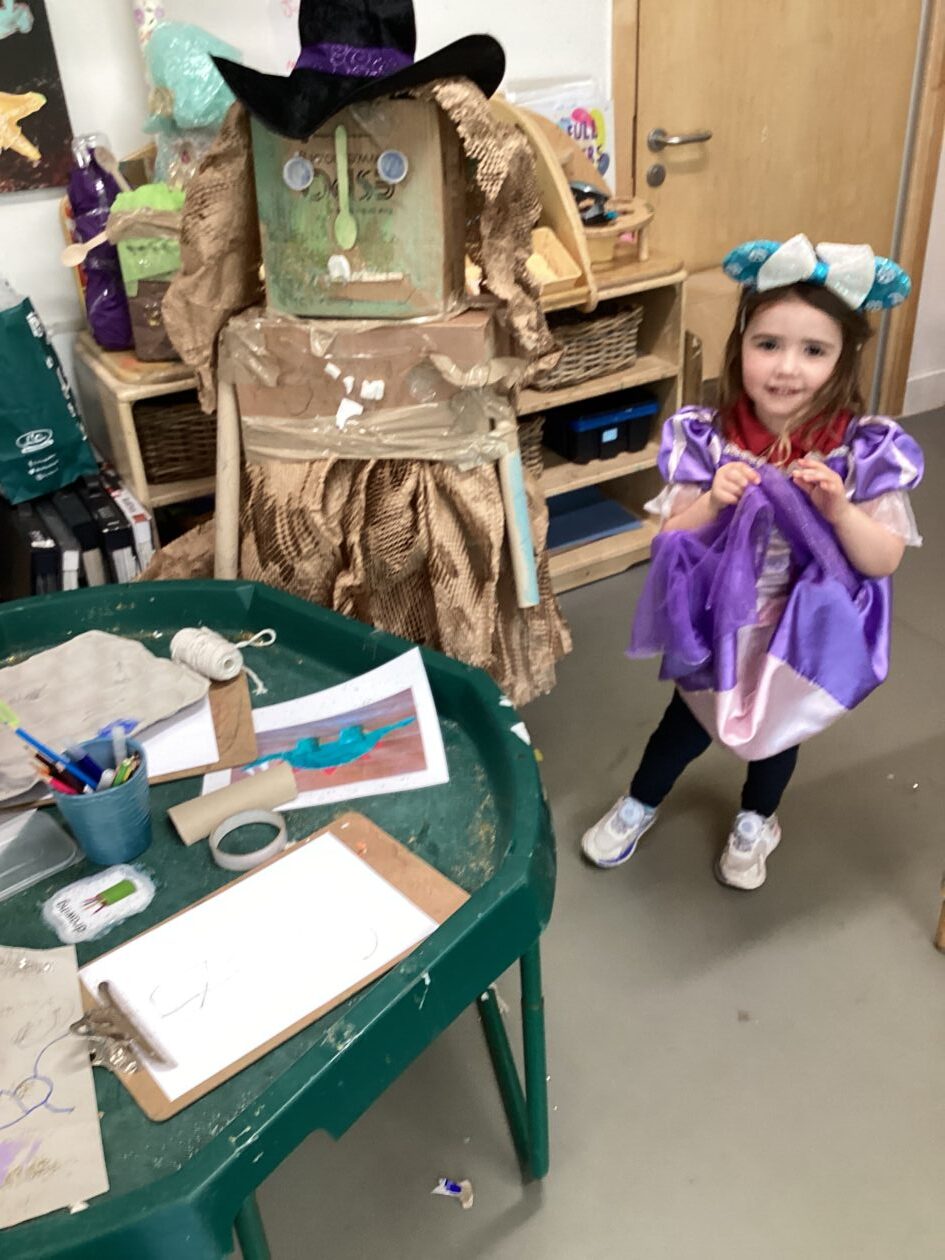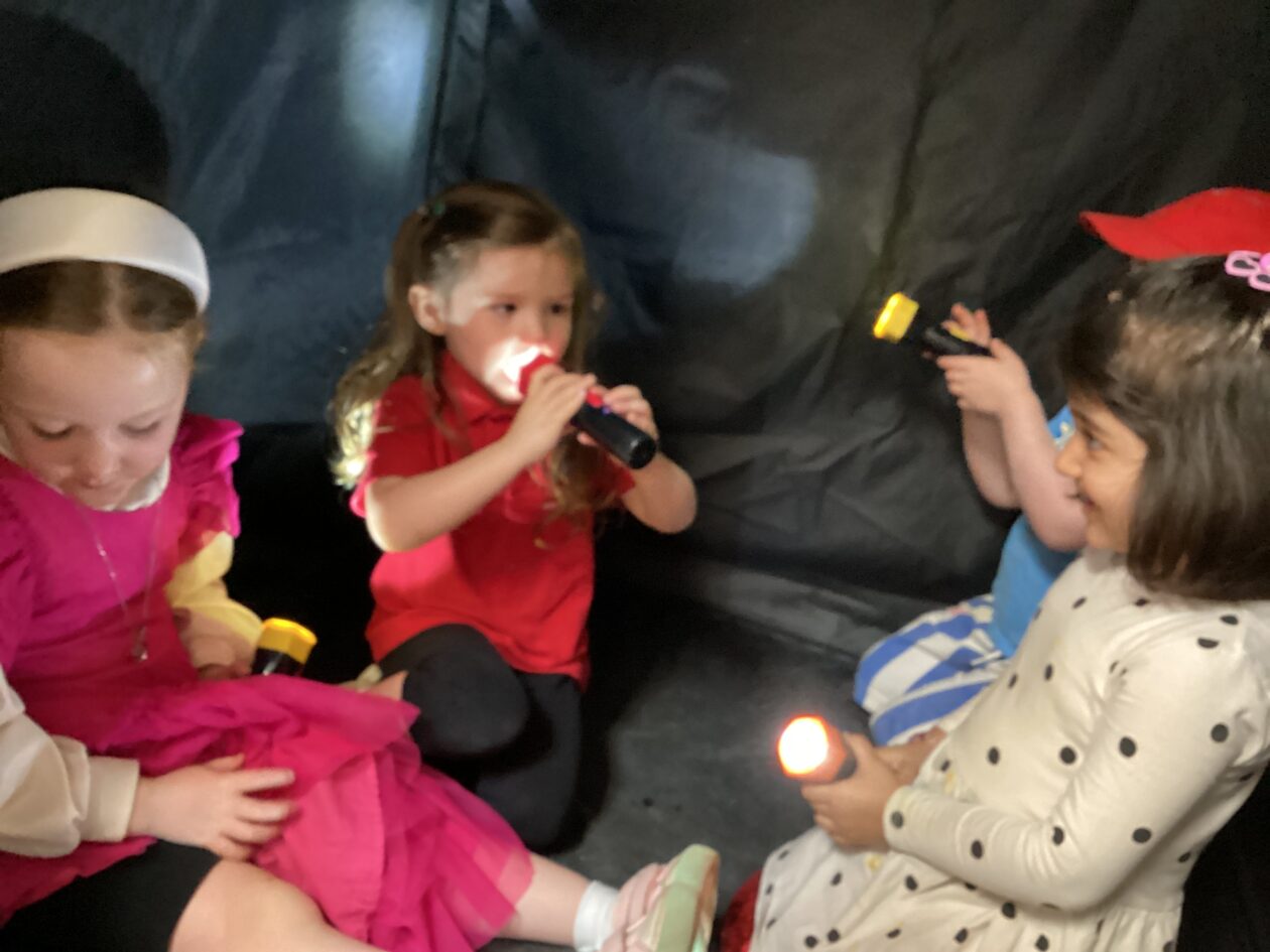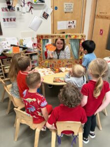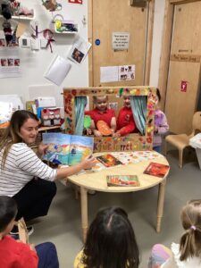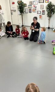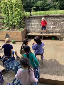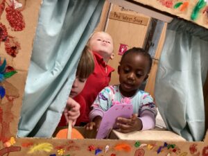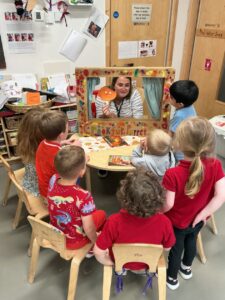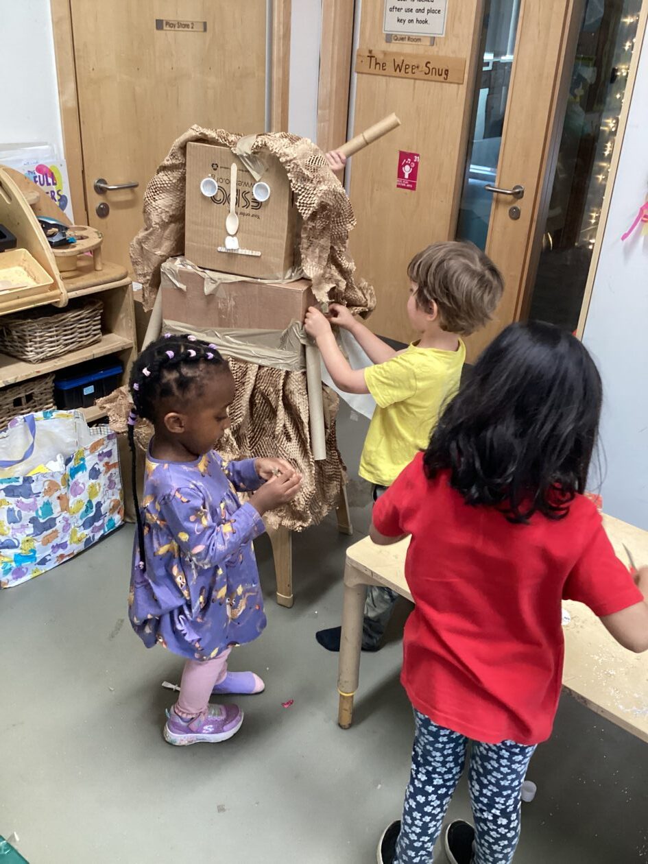 The children decorated our homemade theatre using pens, glitter and sequins and then it was time to start our show! The children had great fun acting out the story and were able to recall the events from the book. They took on the roles of different characters and used different tones when talking as the characters. Some children also made up their own stories and acted these out too!