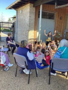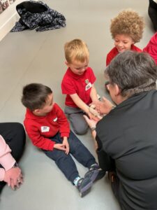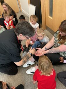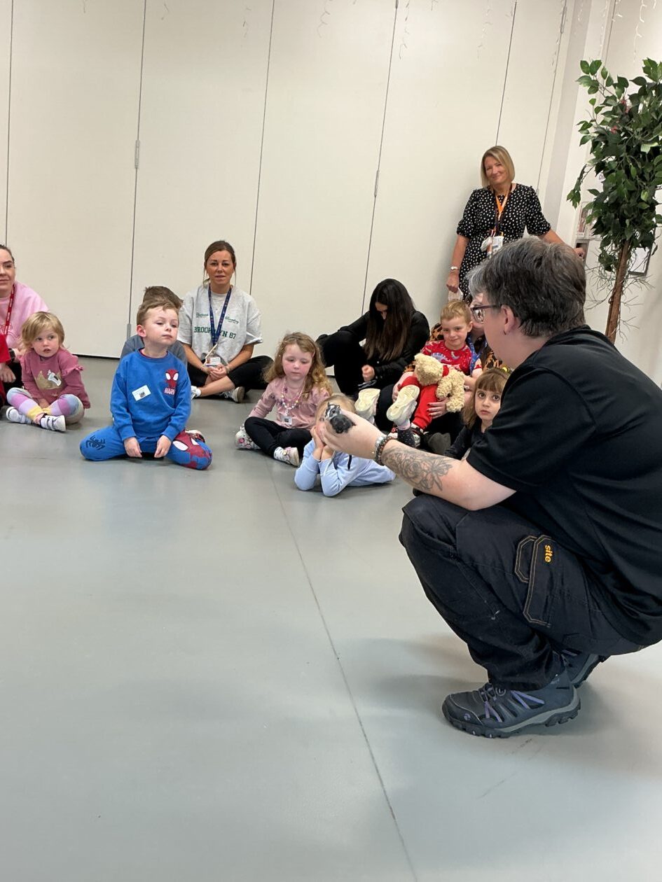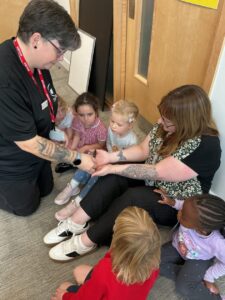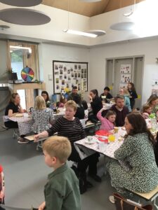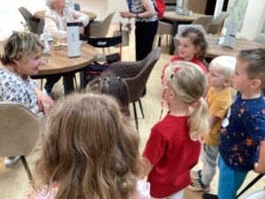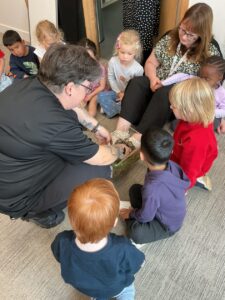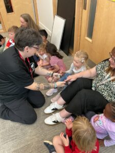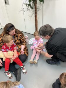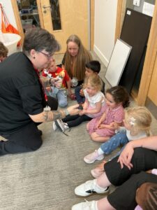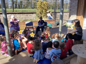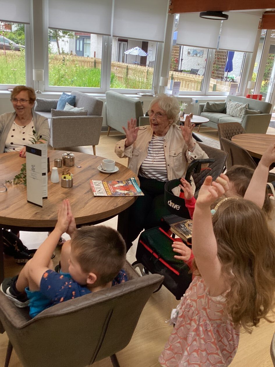 This week we had a visit from our wonderful friends from Crookfur Cottages! The weather was glorious so we had a Bookbug session in the garden with them! Irene then taught the children a poem about a mouse! Our lovely friends then spent a bit of time on the playroom floor engaging in reading, drawing and wonderful conversations with many of the children before enjoying a spot of afternoon tea in the lunch hall. We look forward to seeing them all again soon!