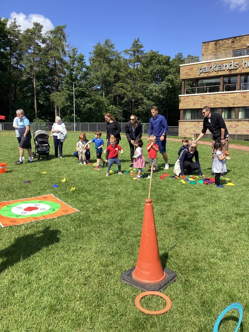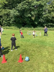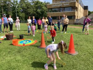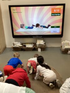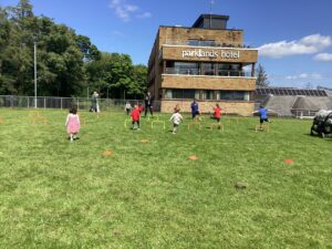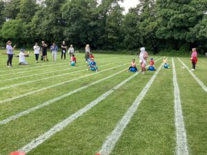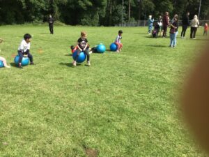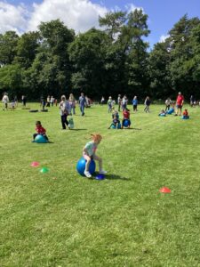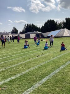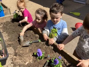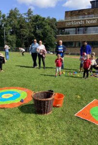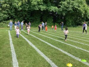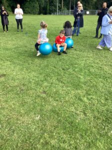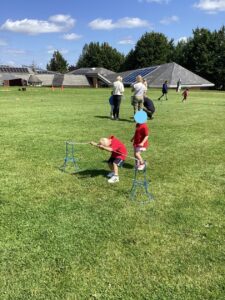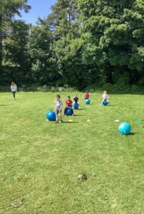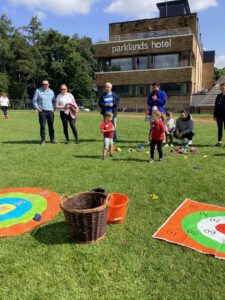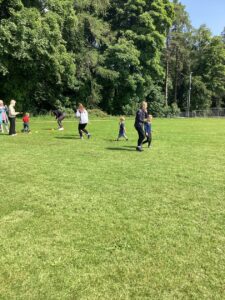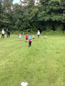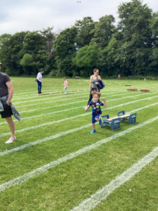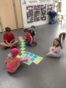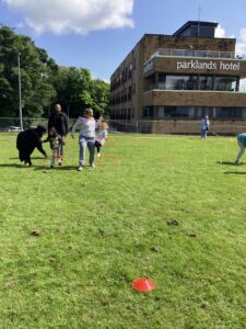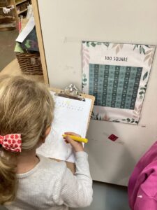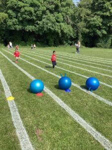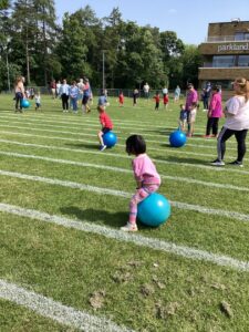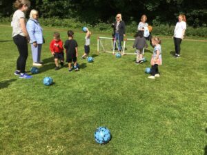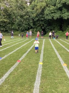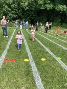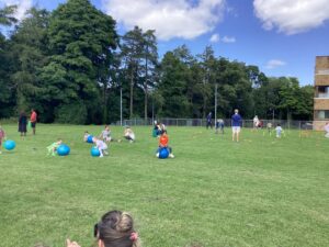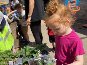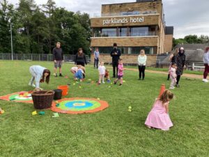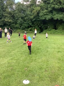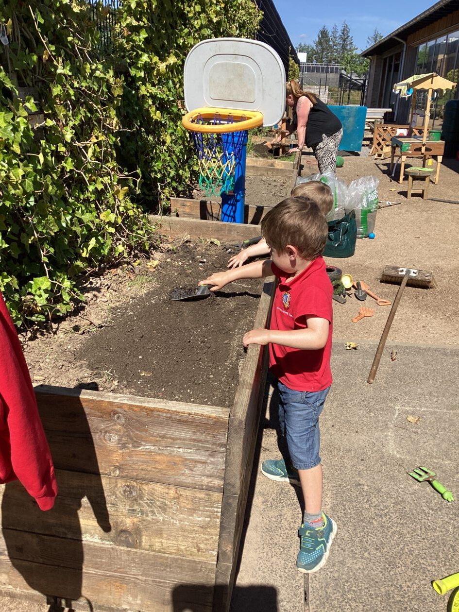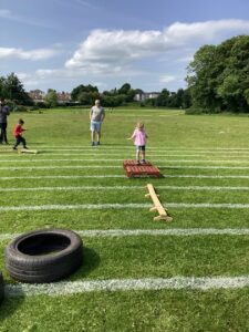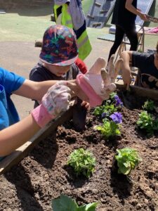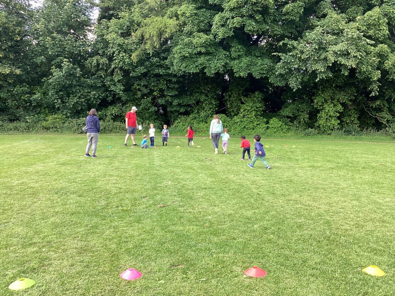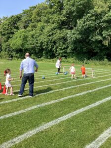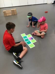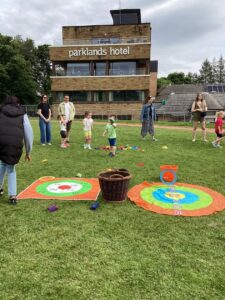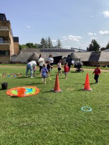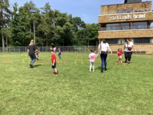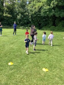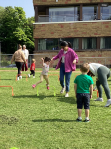 This week outdoors the children have been playing lots of different games. We have practised our throwing, catching and hitting a ball with a bat during ball games. One of our favourites has been basketball where the children formed their own teams and competed against each other. We have also enjoyed playing giant snakes and ladders out in the sunshine. We are learning to subitise and count, and also take turns with each other as we learn the rules of the game.