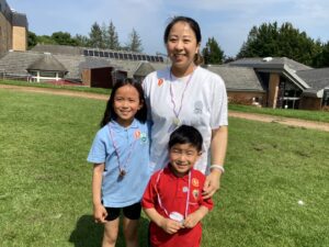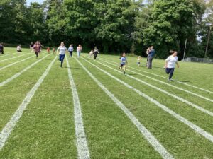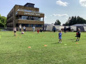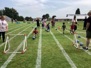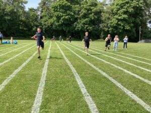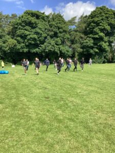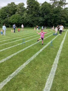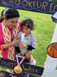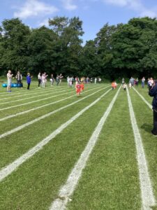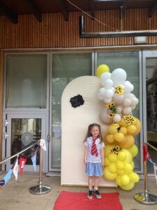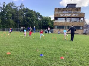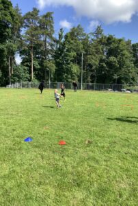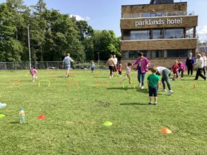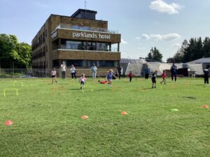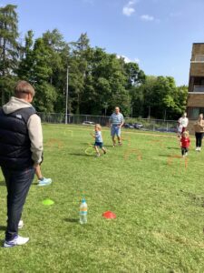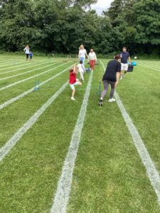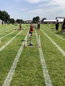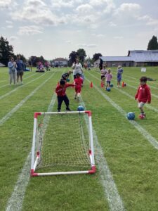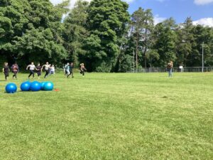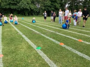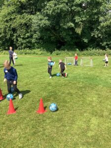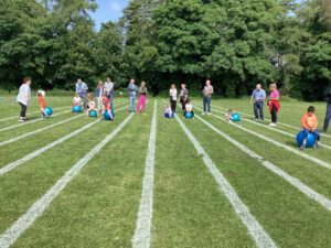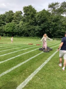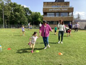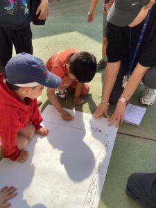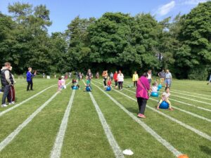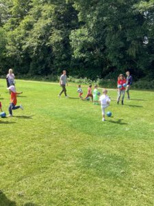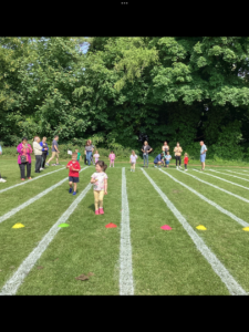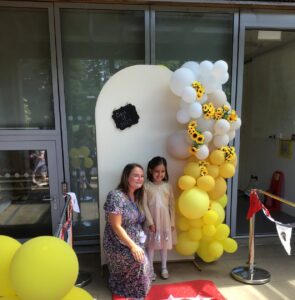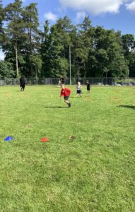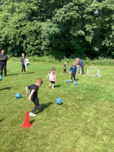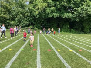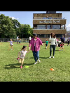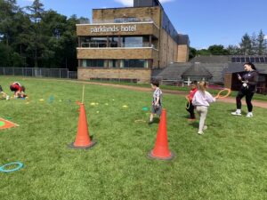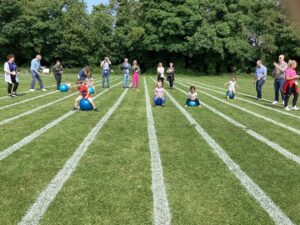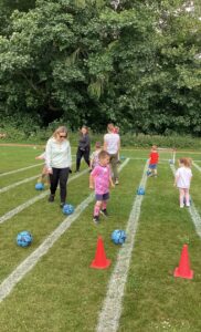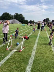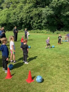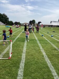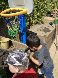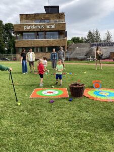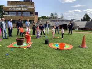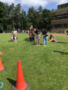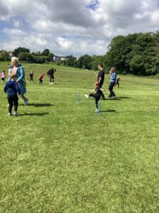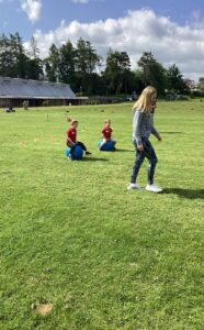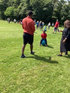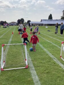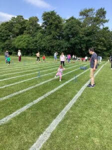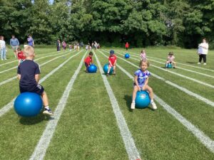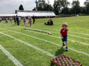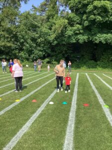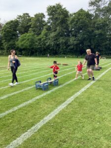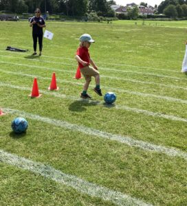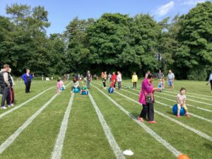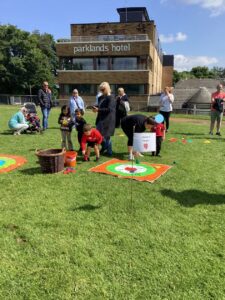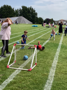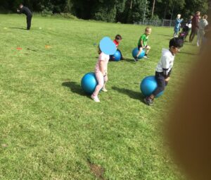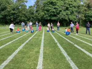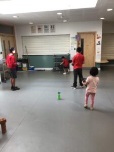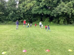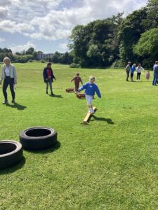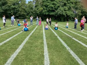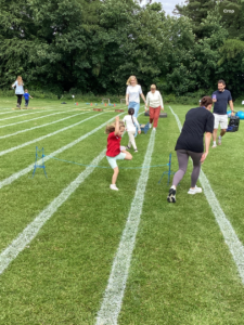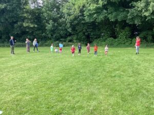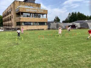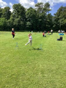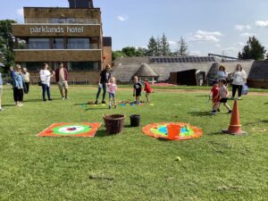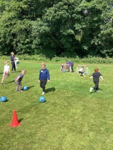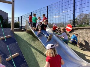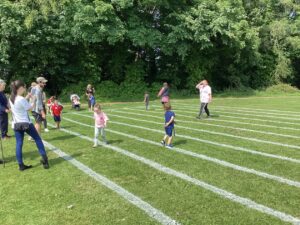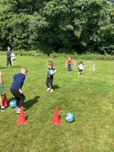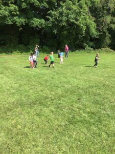 This week outdoors the children have been playing lots of different games. We have practised our throwing, catching and hitting a ball with a bat during ball games. One of our favourites has been basketball where the children formed their own teams and competed against each other. We have also enjoyed playing giant snakes and ladders out in the sunshine. We are learning to subitise and count, and also take turns with each other as we learn the rules of the game.