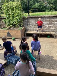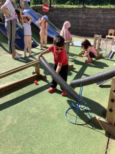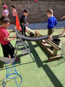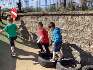 In the outdoor area this week the children have been building and creating their own obstacle courses! Obstacle courses are great for enhancing gross motor skills like balance, coordination and strength and also fosters cognitive skills like problem solving and following instructions. It also promotes social skills such as cooperation and communication as they all work together!
