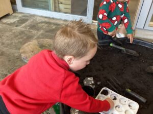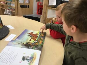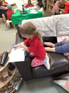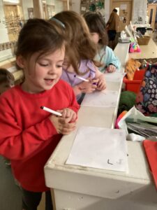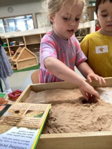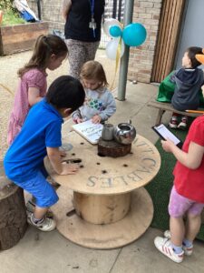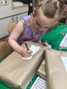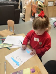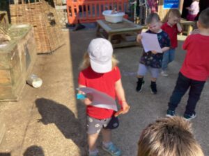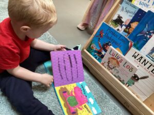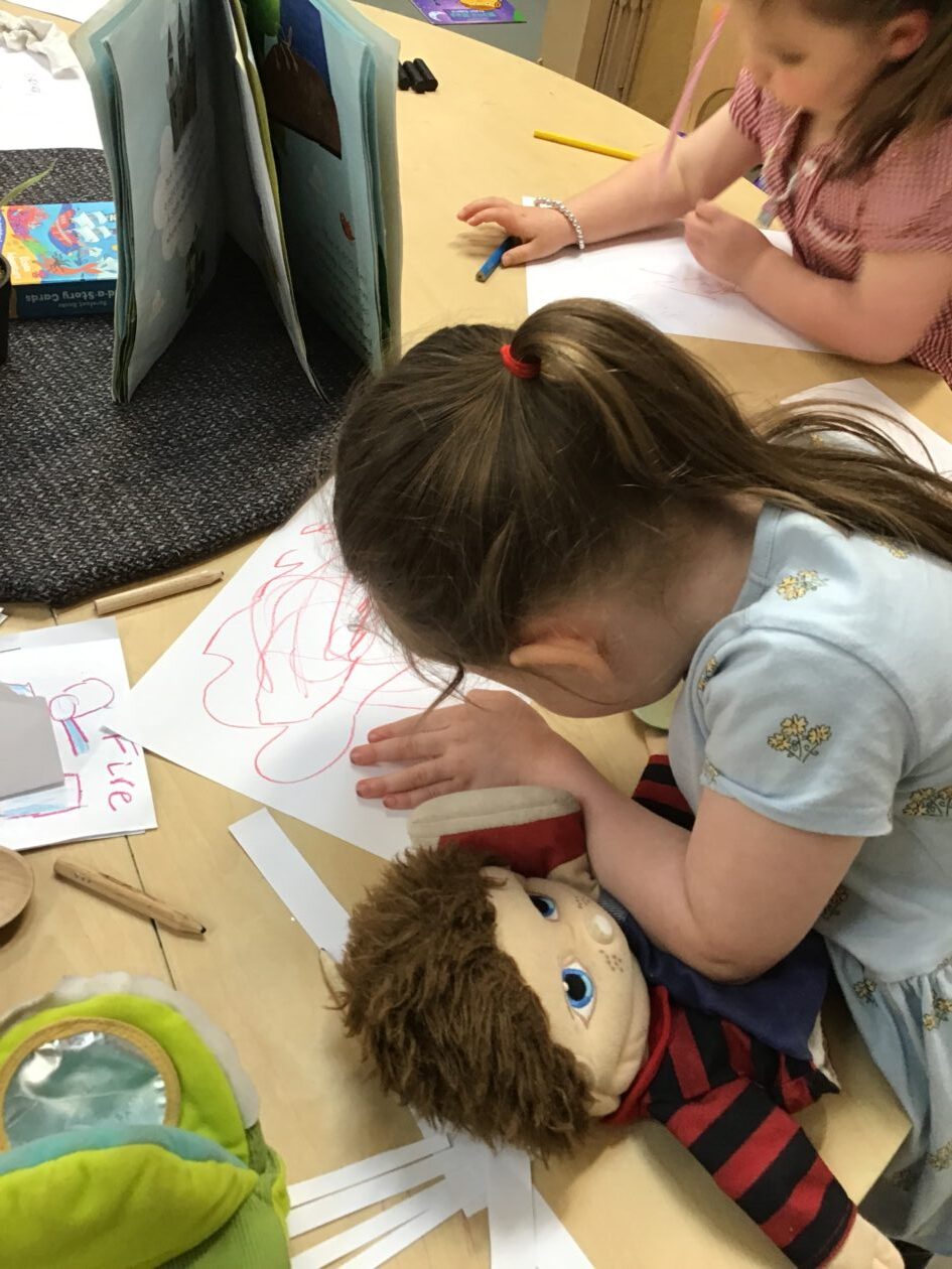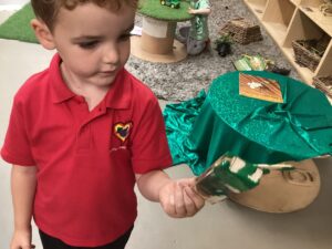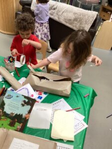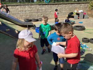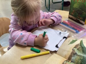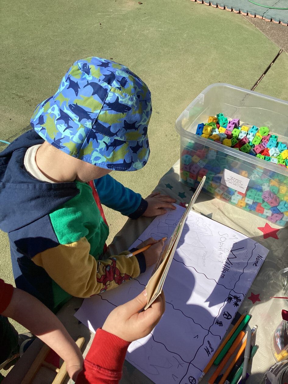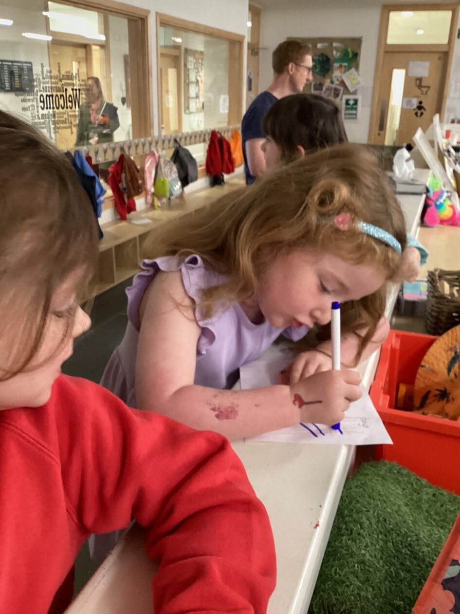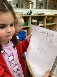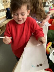 This week in the literacy area the children have been going on lots of hunts! They started with letter hunts at the literacy area which then expanded into treasure hunts throughout the room! The children have been creating their own treasure maps, working on their mark making skills and have been searching for some golden eggs!