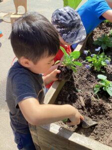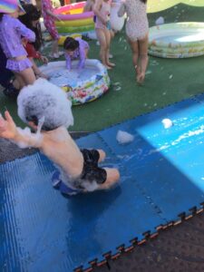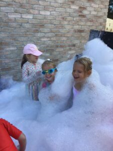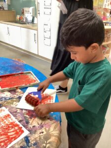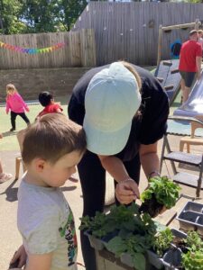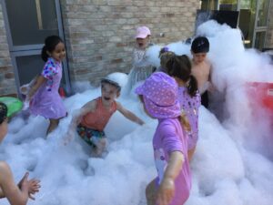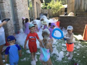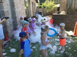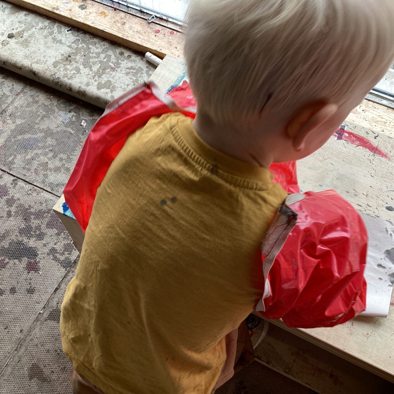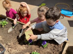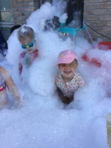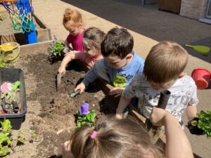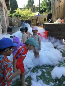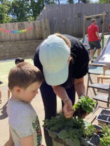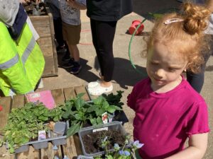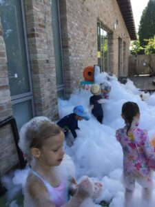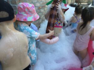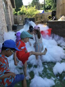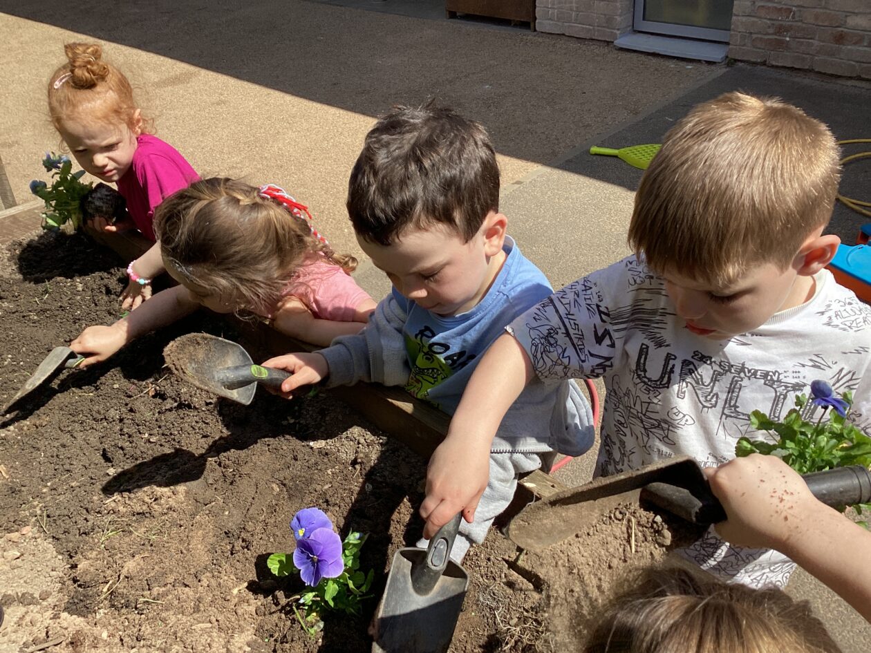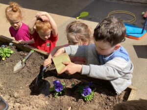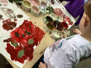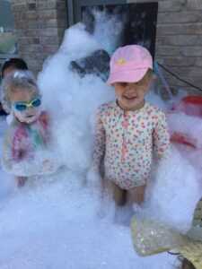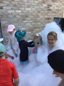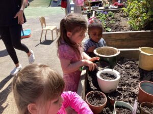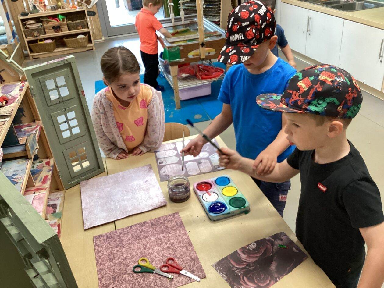 This week in the garden we have been enjoying the lovely sunshine!. The children have been continuing to work on their gross motor skills as they used big arm movements to paint on the bubble wrap and paper using the rollers and paintbrushes. It was also great fun to pop the bubble wrap afterwards, using the small muscles in our fingers.