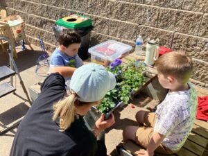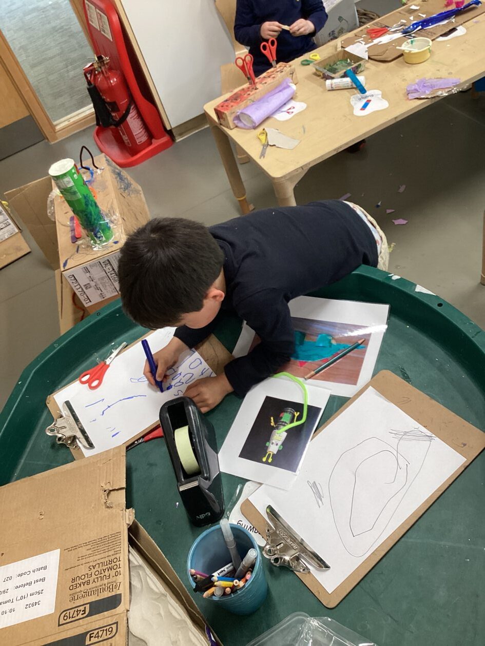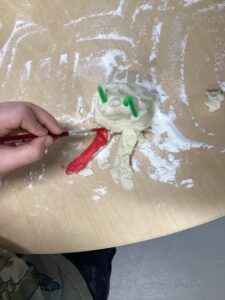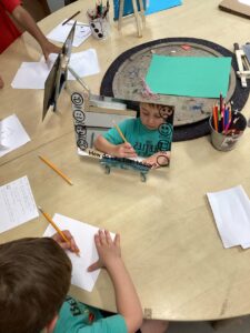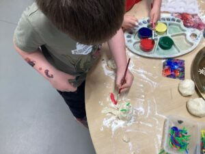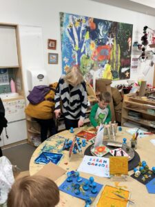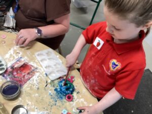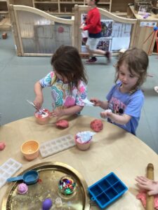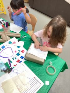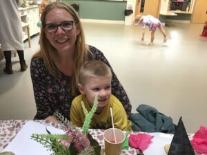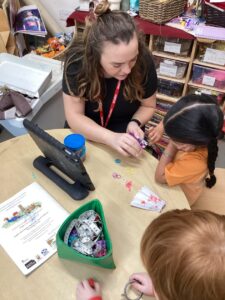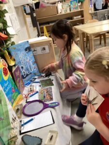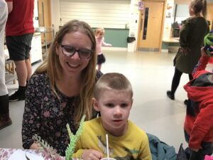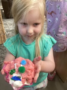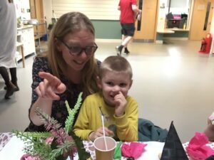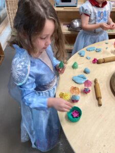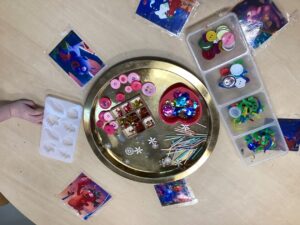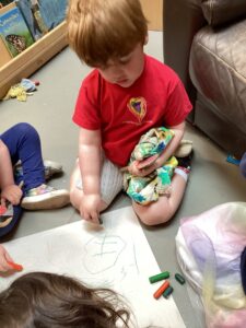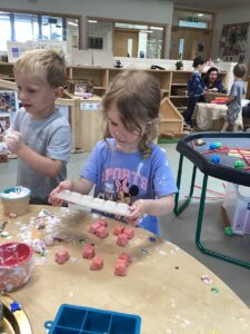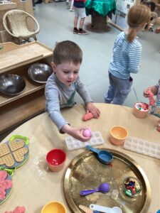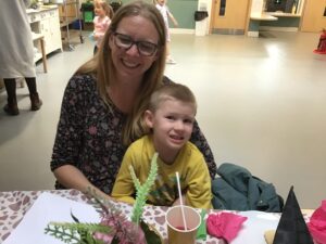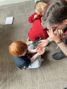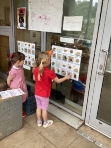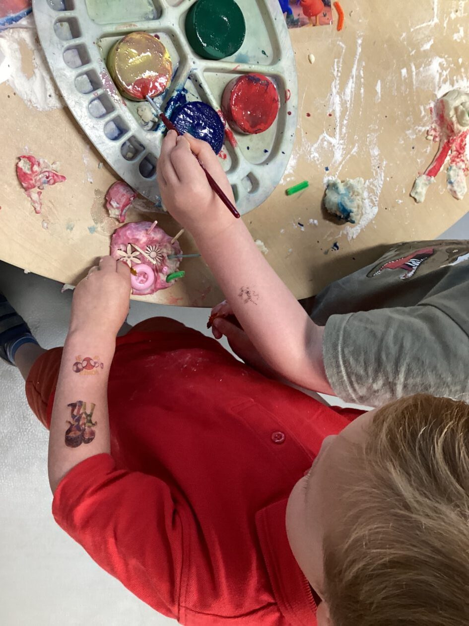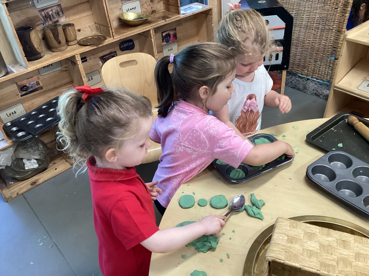 This week the children have been reading The Smeds and The Smoos. They decided to  make a batch of blue playdough, a batch of red playdough and then got creative with some loose parts, making their very own Smeds and Smoos. Some of the children even made some of their own aliens “mine’s called wiggly tickly wiggly” AY