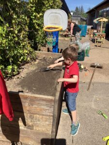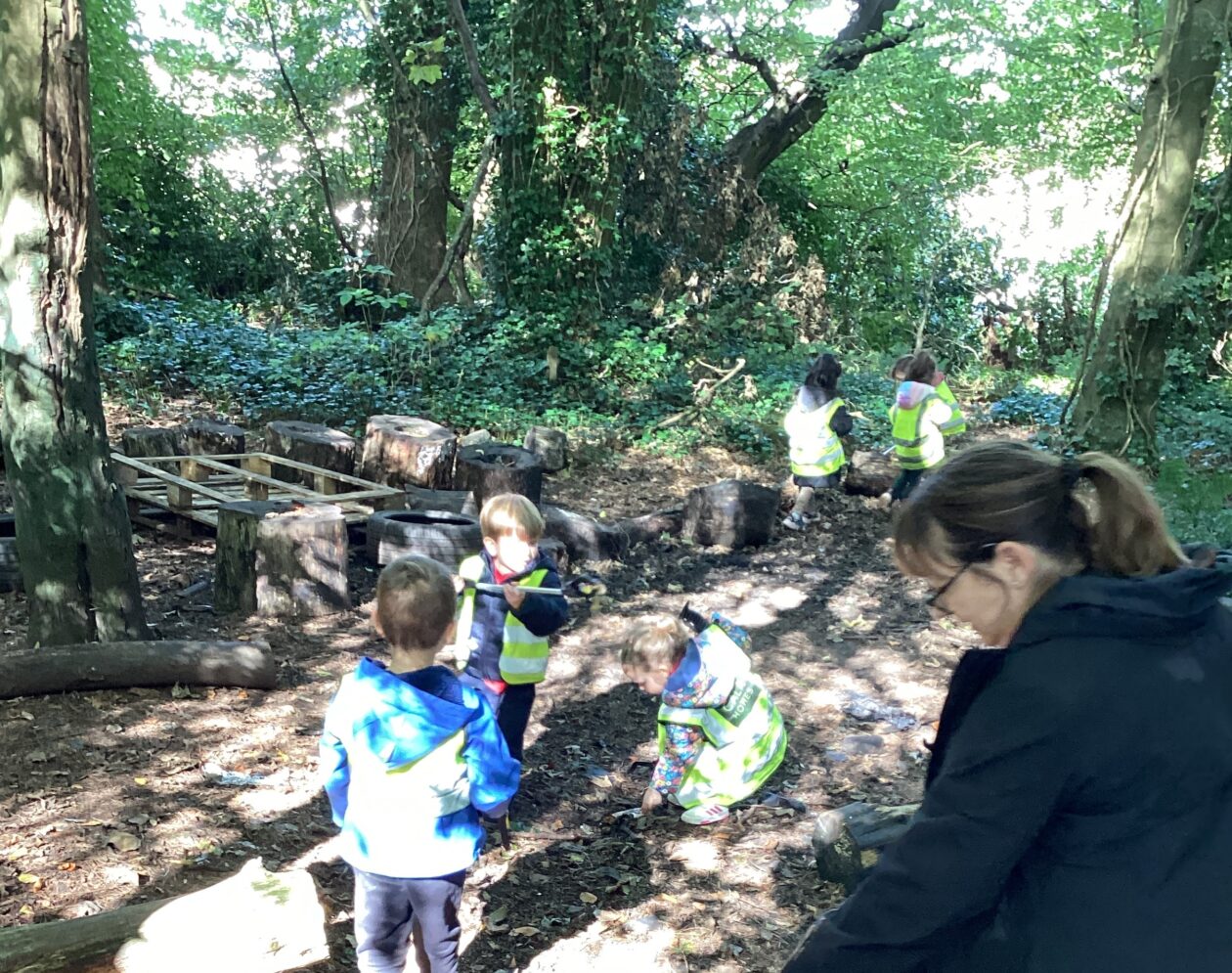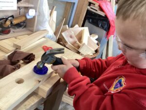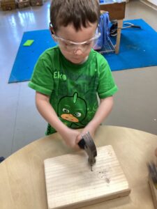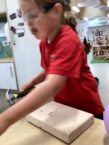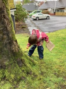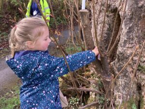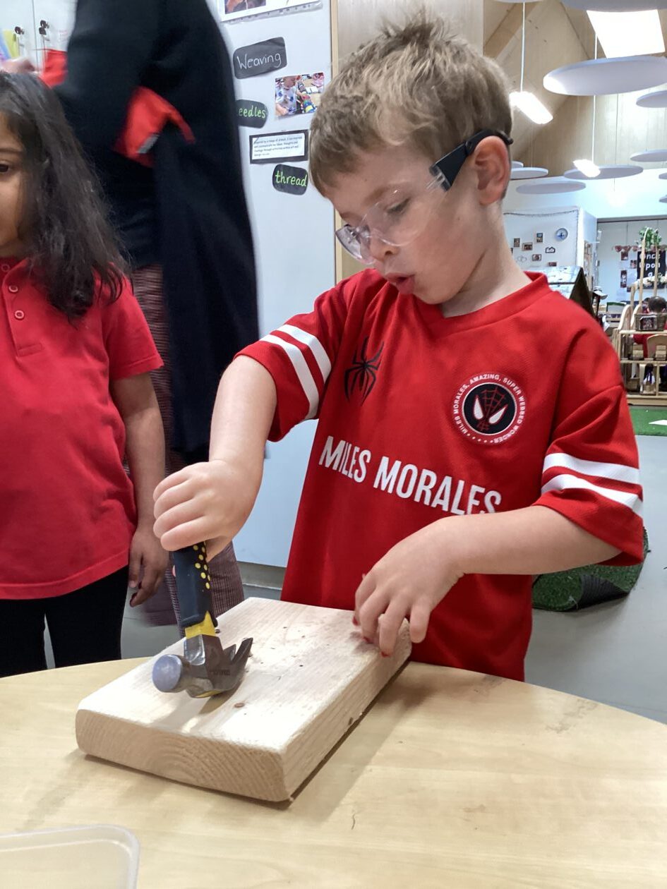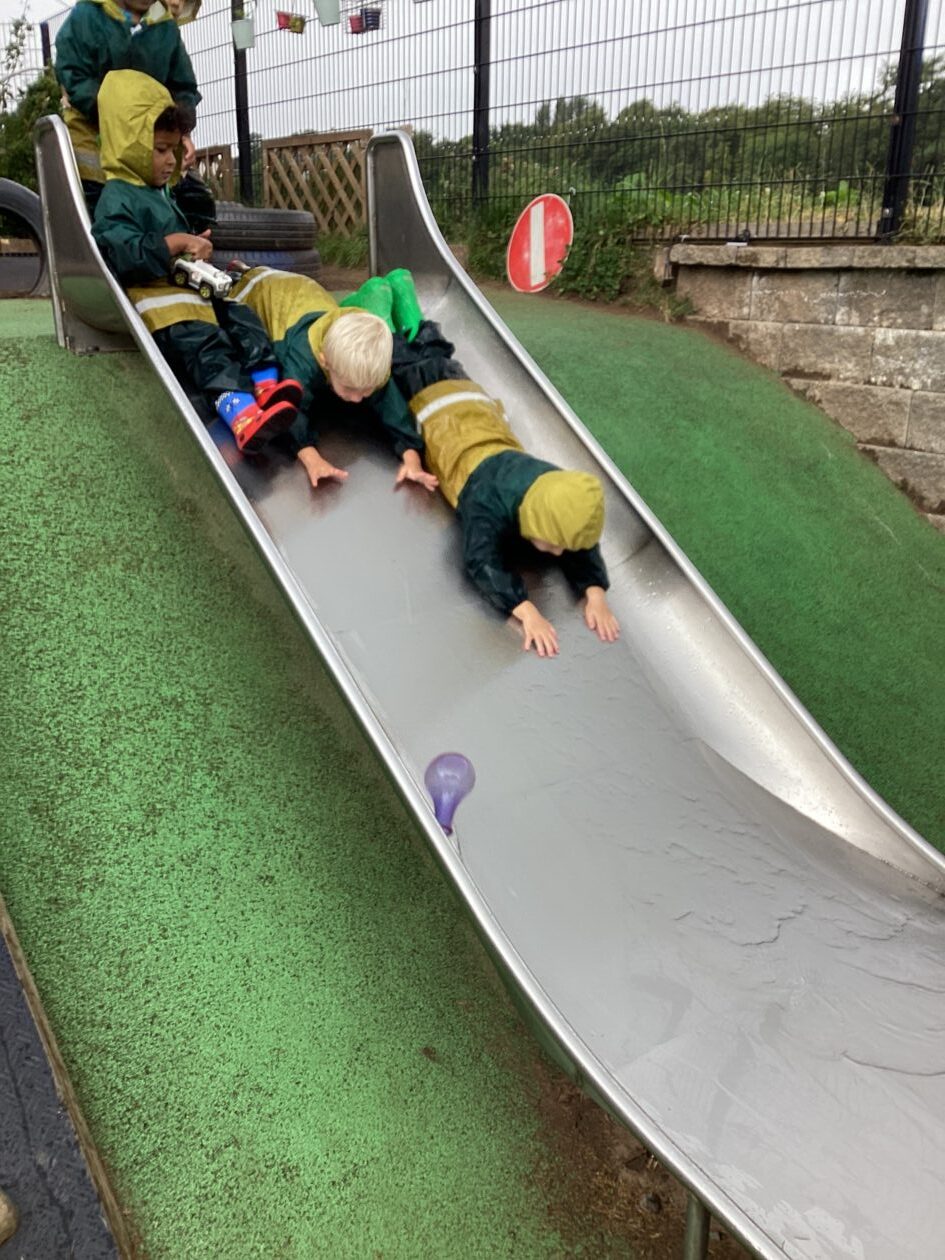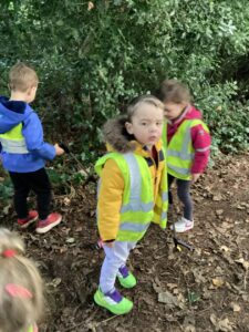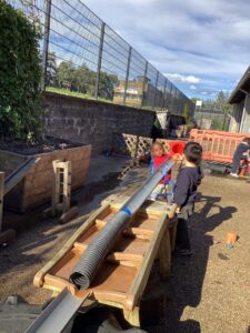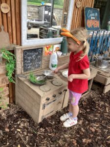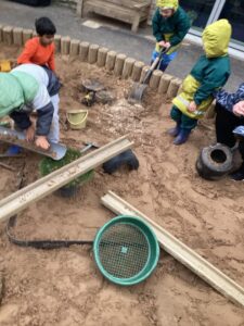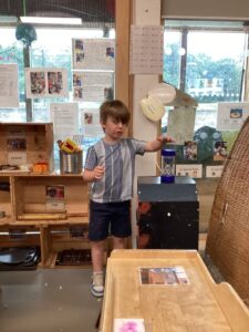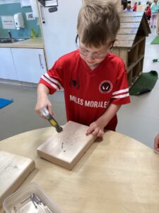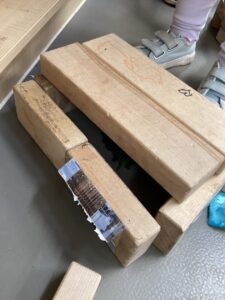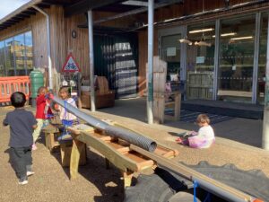 This week in our outdoor area we have embraced the very wet weather and made use of the learning opportunities rain brings! Even in the wet weather our children like to explore our outdoor area. The children have also been designing and creating at our woodwork bench in our outdoor classroom and you can see some of their wonderful creations below!