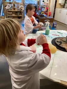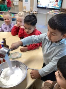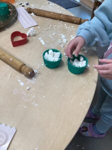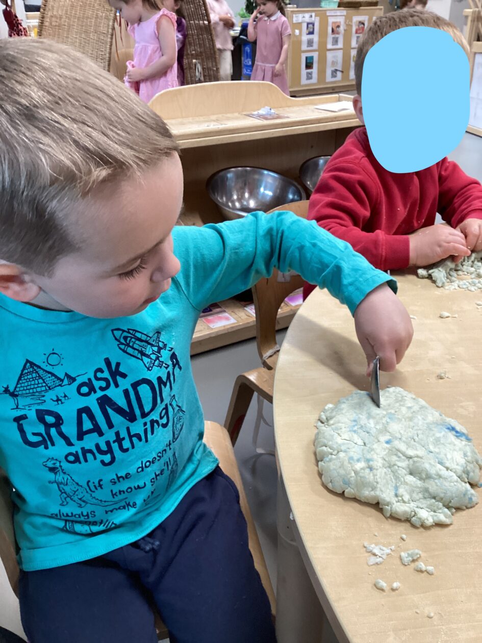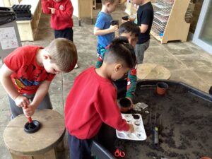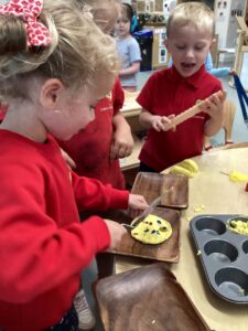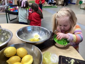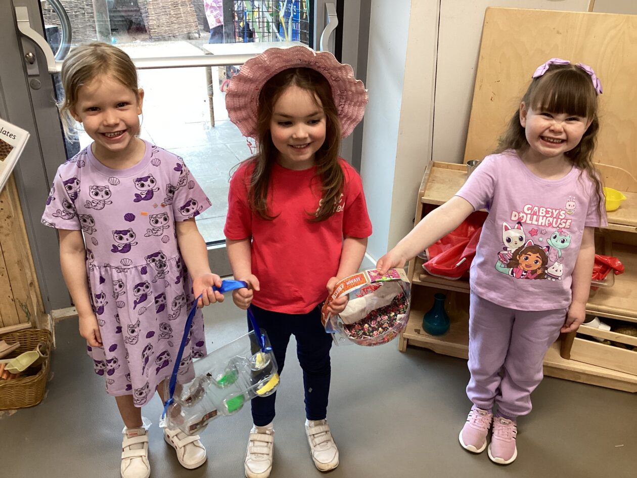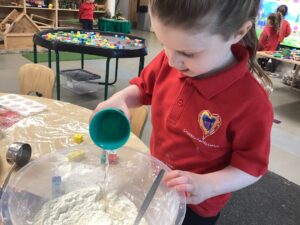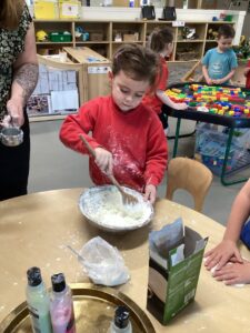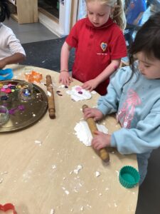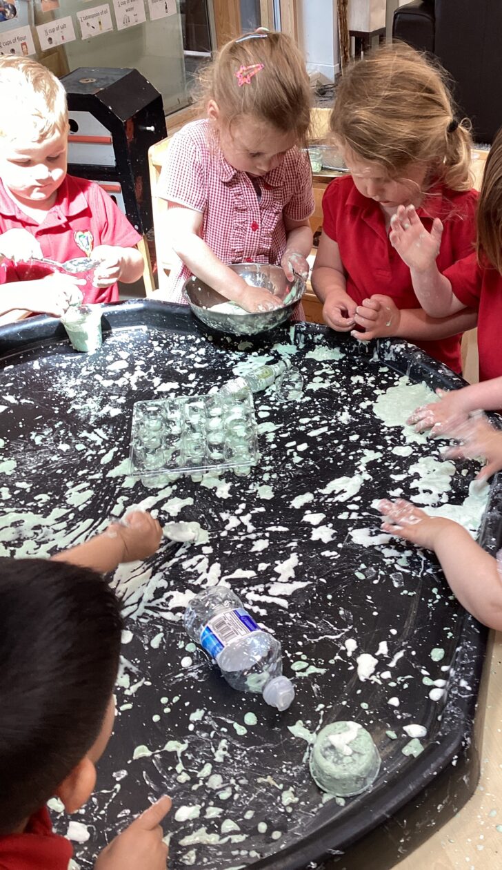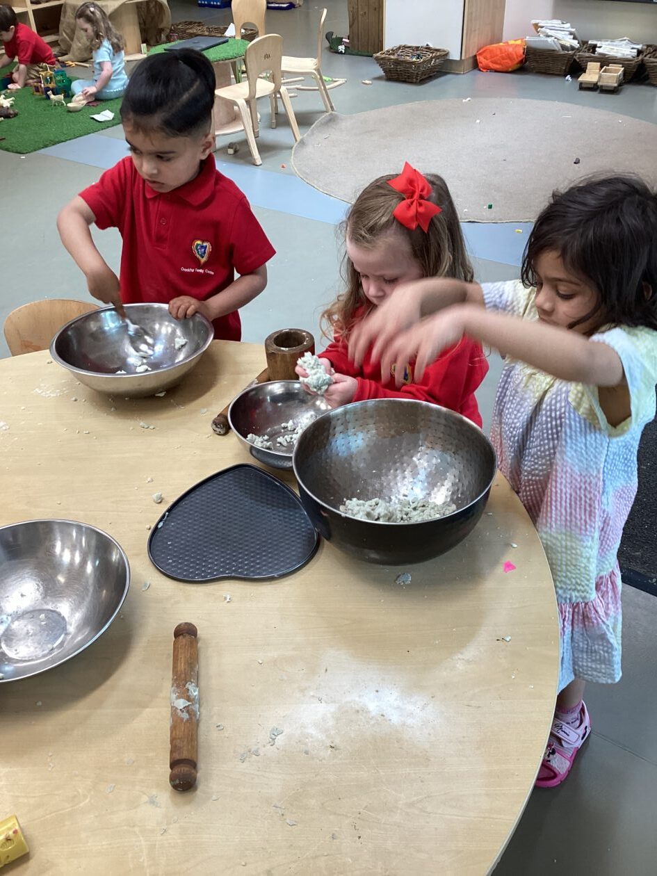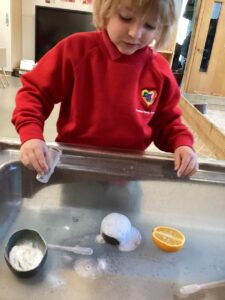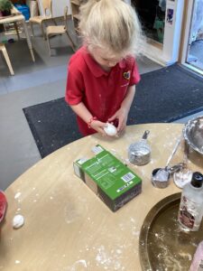 We have been creating Easter eggs and Easter bunnies out of clay, making our Easter dinner in the home corner and creating lemon play dough! We have enjoyed creating science experiments with bicarbonate of soda and mixing it with vinegar and lemon juice to see which one fizzes up the most!