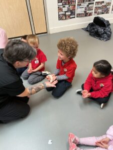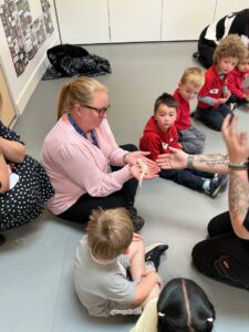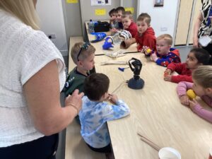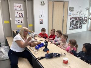 Gillian brought in two different types of hands – a myoelectric hand and a body power hand. The children were learning about muscles in the forearms and the nerves from the brain which send signals to the hand to create movement.